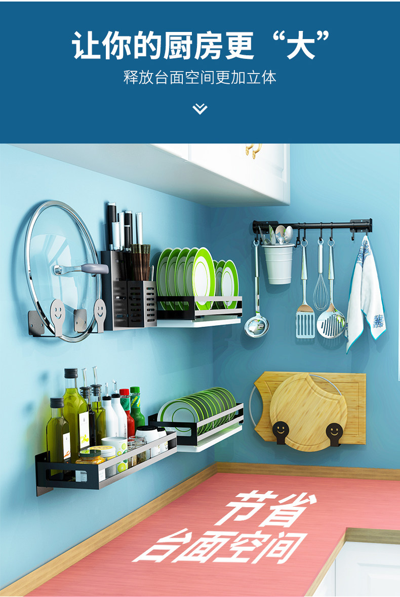 스테인레스 스틸 주방 수납 랙 냄비 뚜껑 랙 벽걸이 형 비 천공 도마 보관 랙 젓가락 주방 용품 칼 홀더스토어 가기