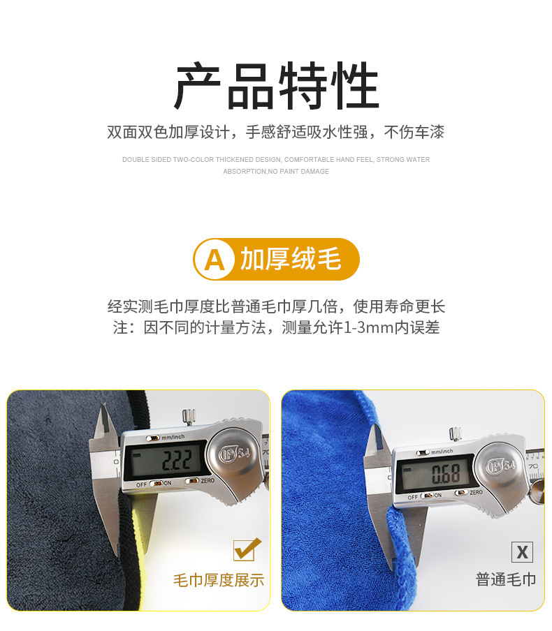 세차타월, 산호벨벳 양면 2색 자동차 닦는 타월, 두꺼운 흡수타월, 자동차 청소천, 고밀도 세차타월