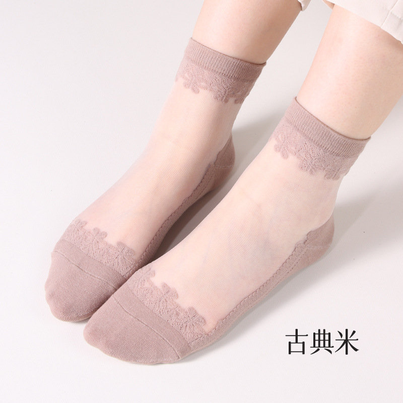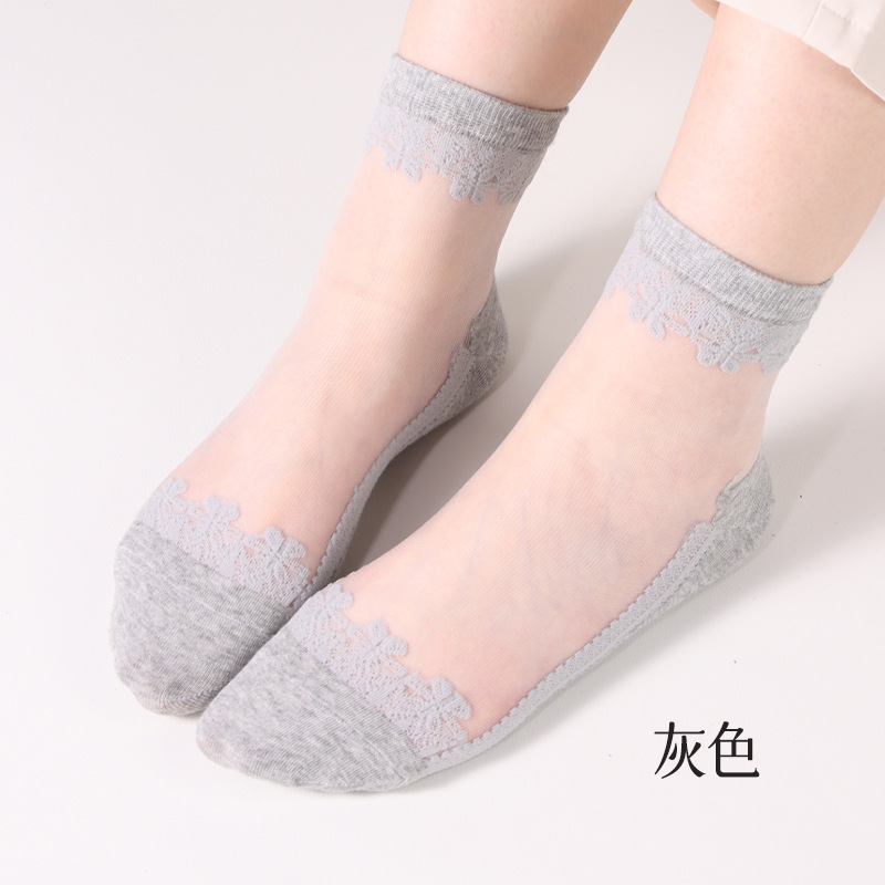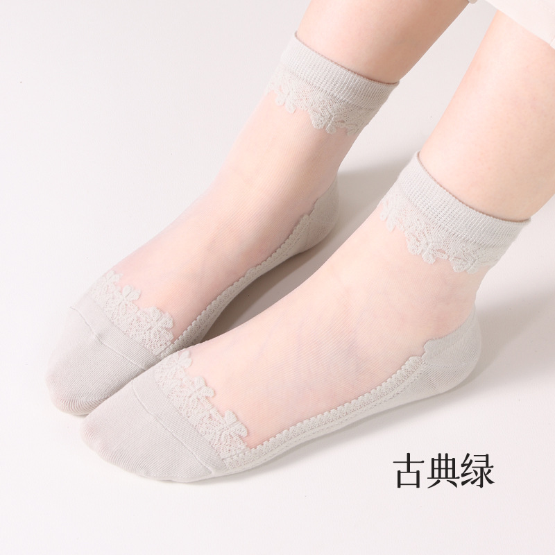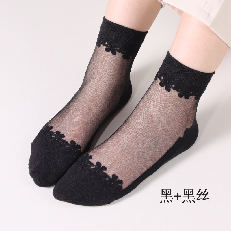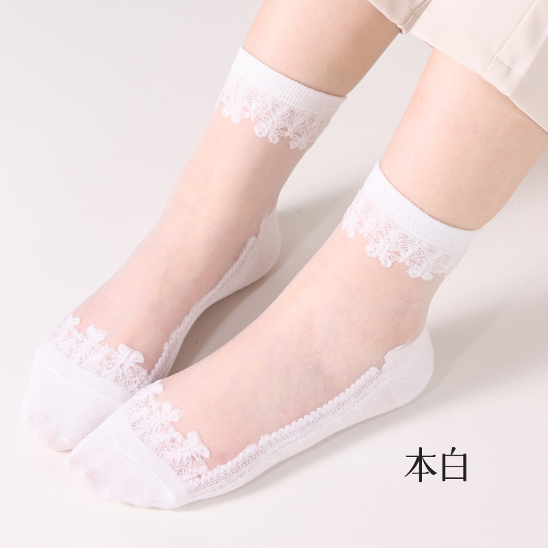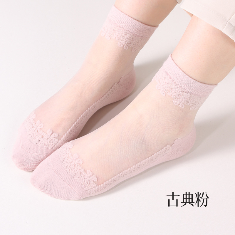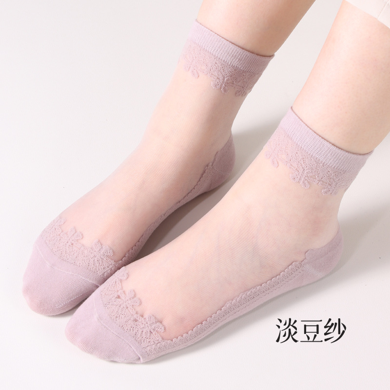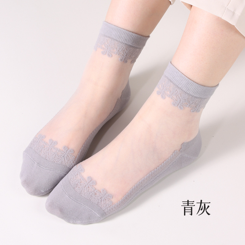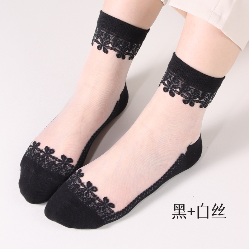 여성용 양말 봄 여름 새로운 패션 크리스탈 실크 여성용 일본 면화 바닥 스타킹 중간 튜브 자카드 유리 실크 여성용 양말 도매스토어 가기