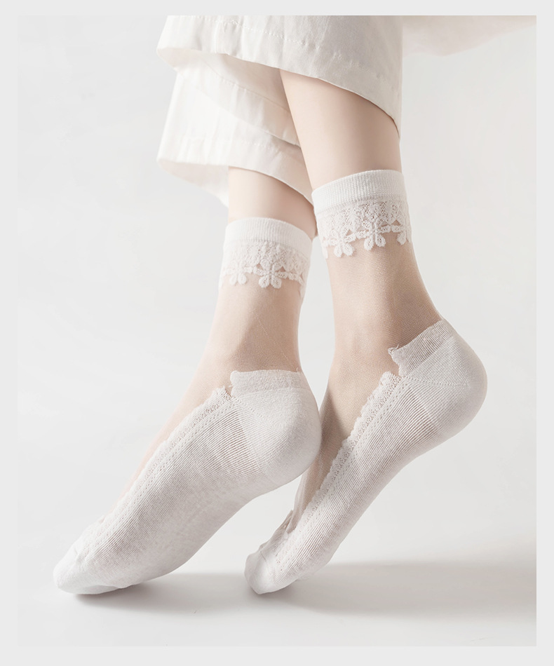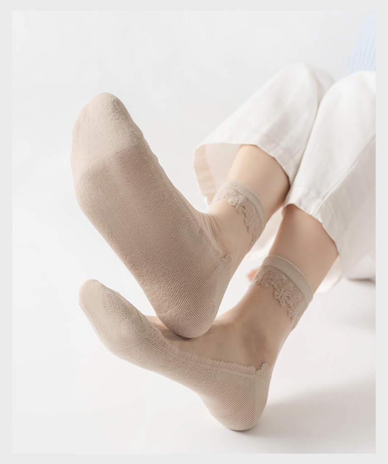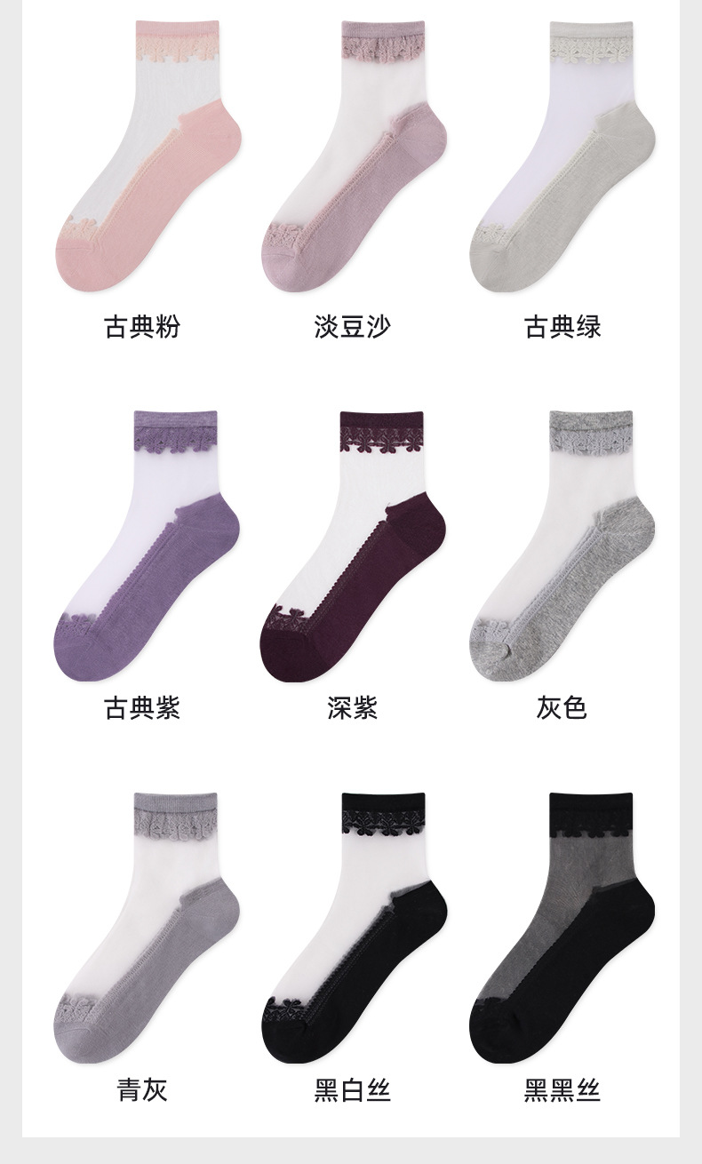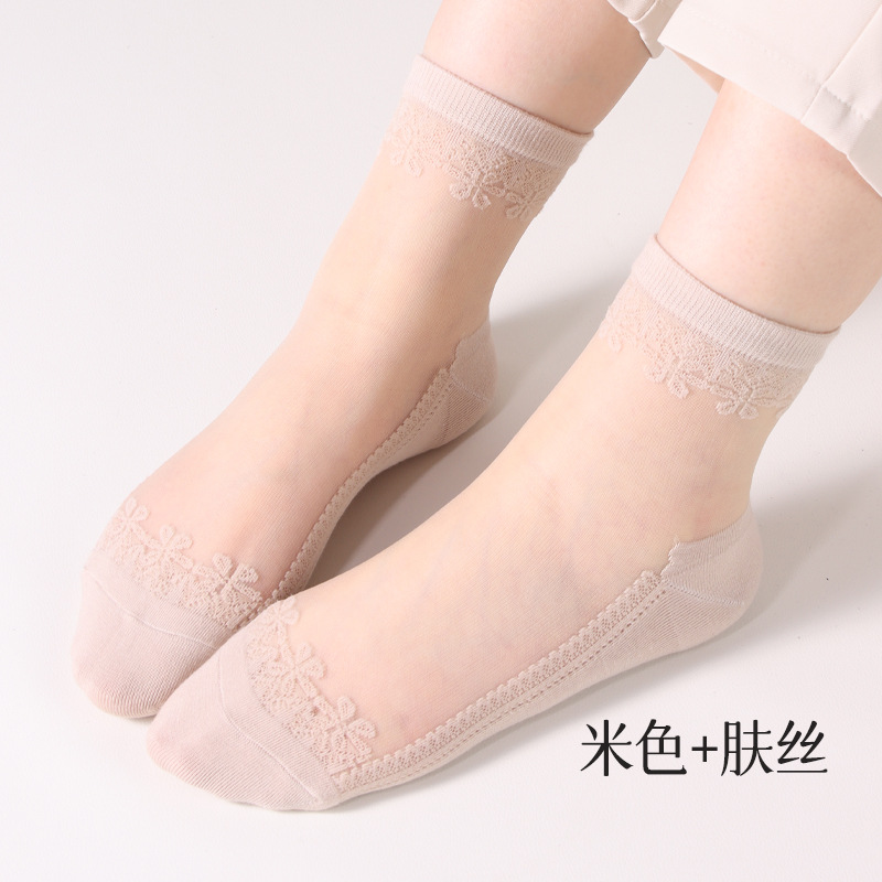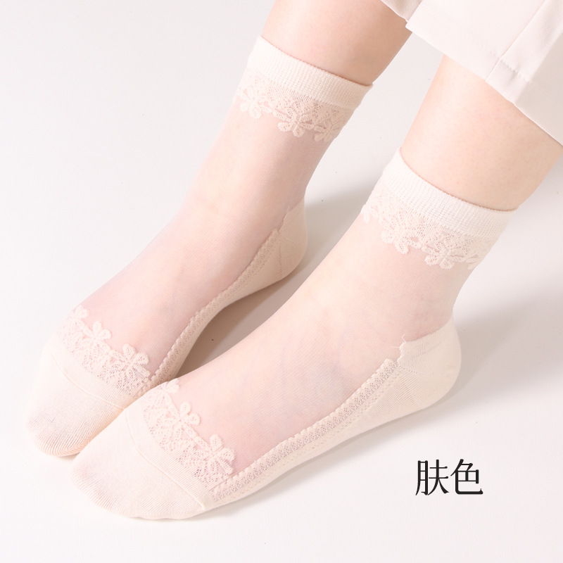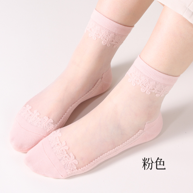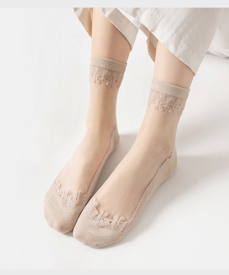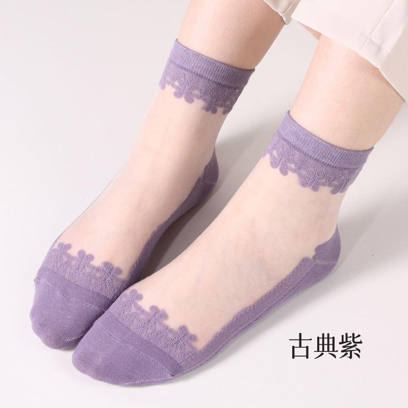 여성용 양말 봄 여름 새로운 패션 크리스탈 실크 여성용 일본 면화 바닥 스타킹 중간 튜브 자카드 유리 실크 여성용 양말 도매스토어 가기