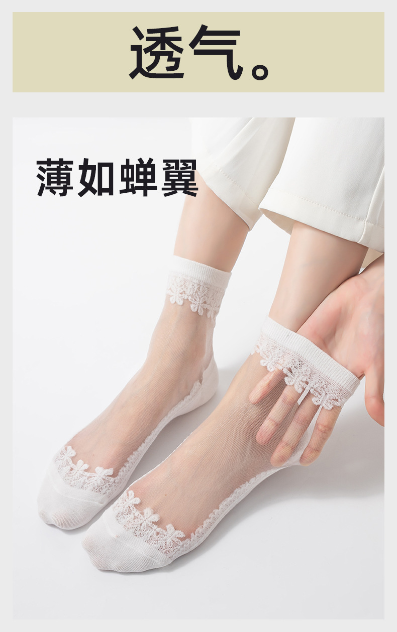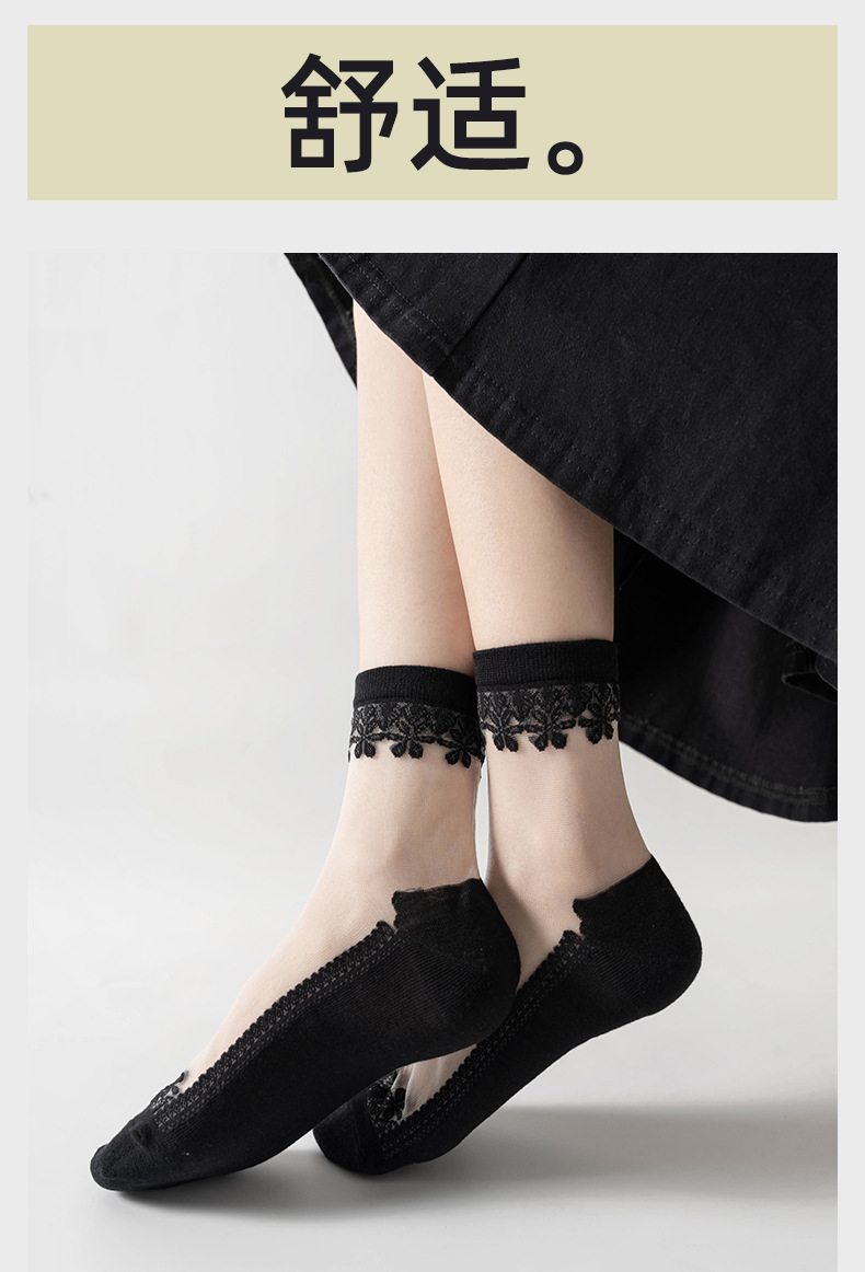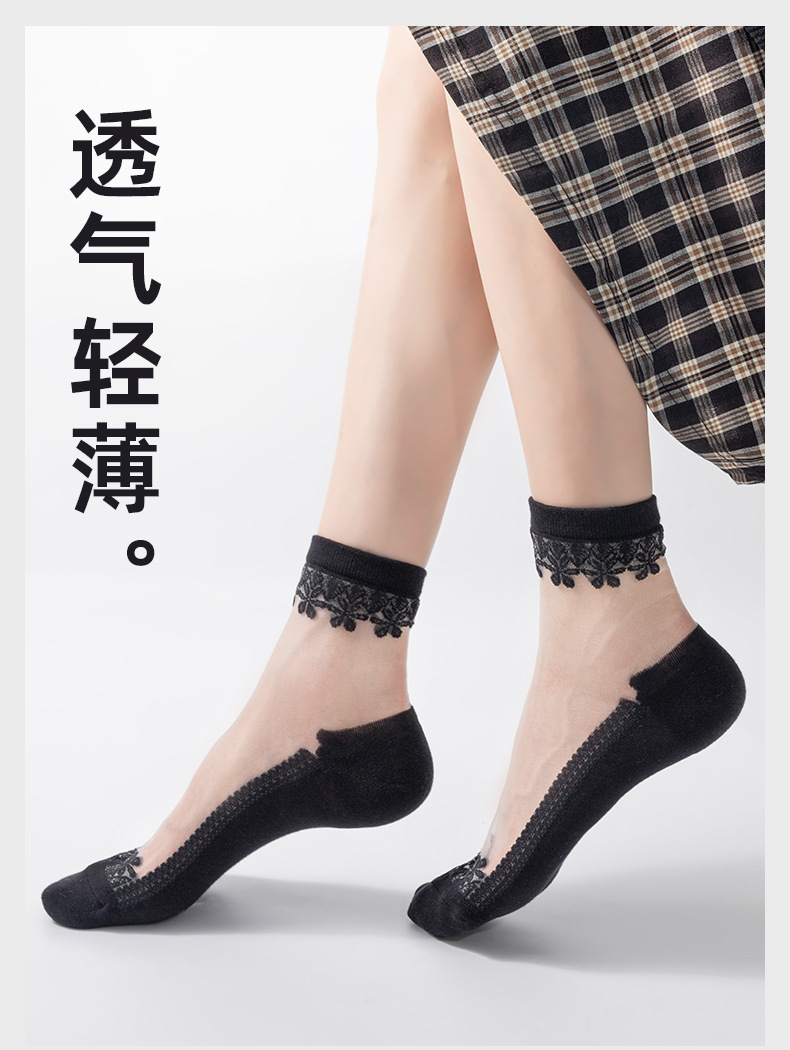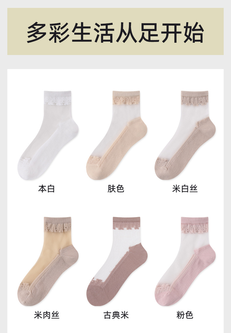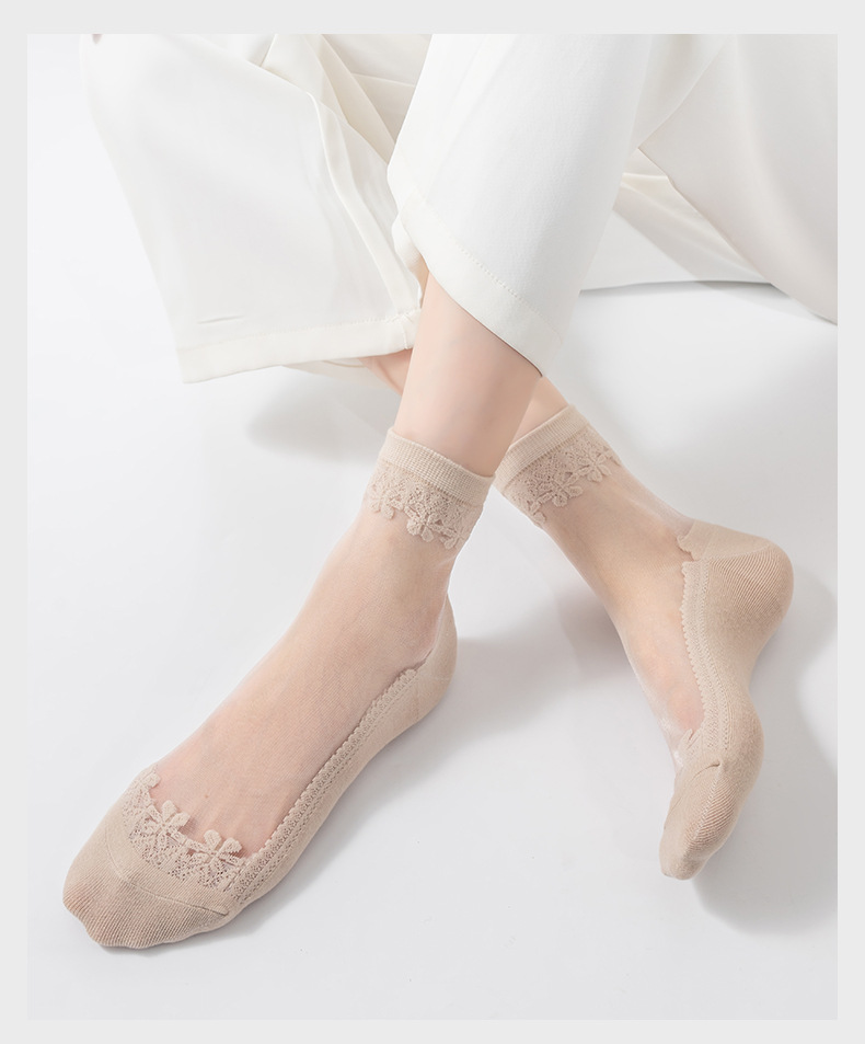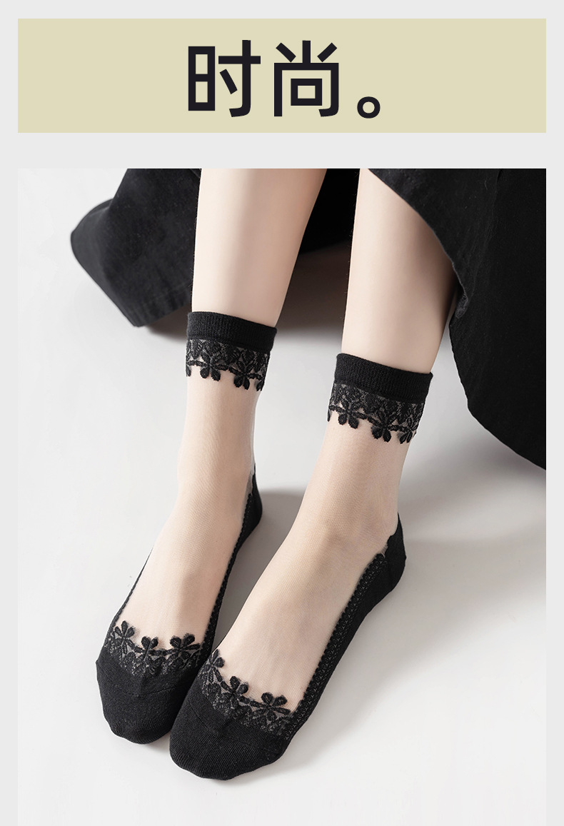 여성용 양말 봄 여름 새로운 패션 크리스탈 실크 여성용 일본 면화 바닥 스타킹 중간 튜브 자카드 유리 실크 여성용 양말 도매스토어 가기