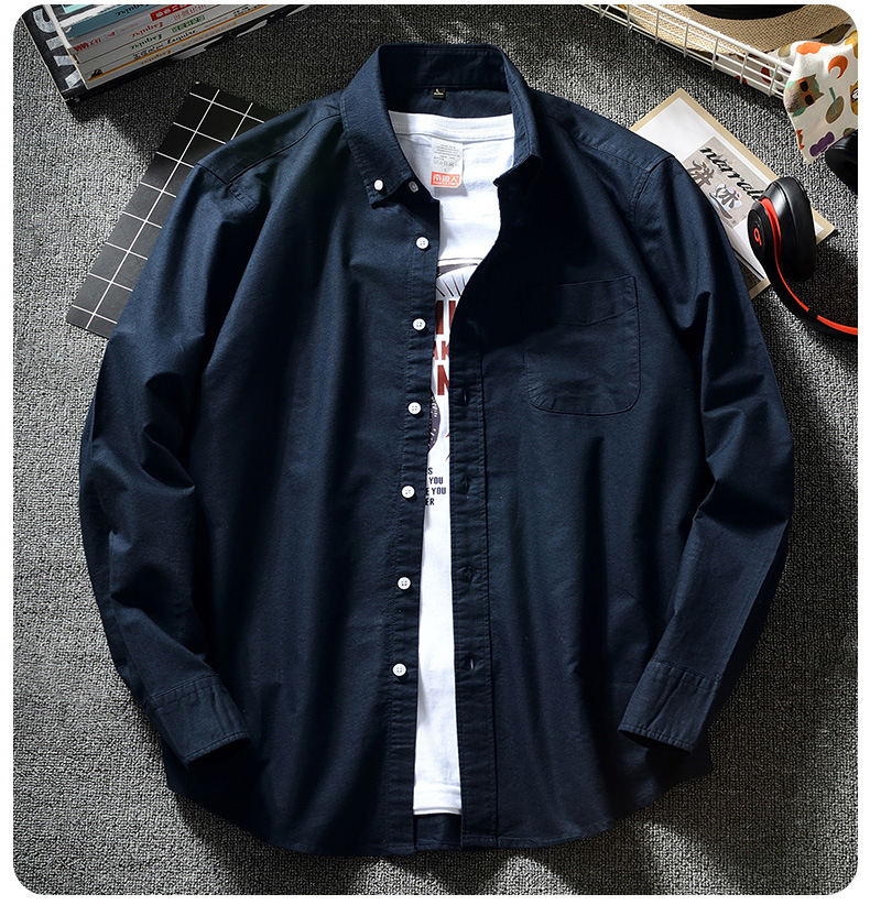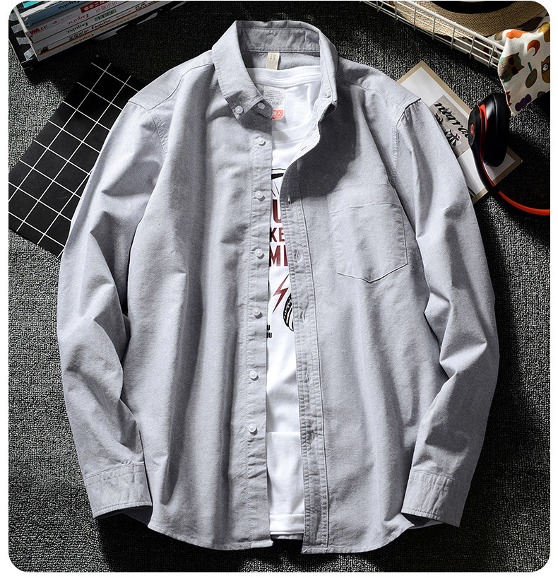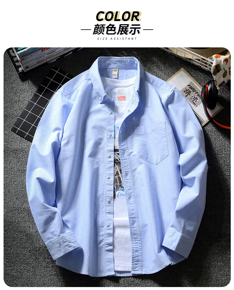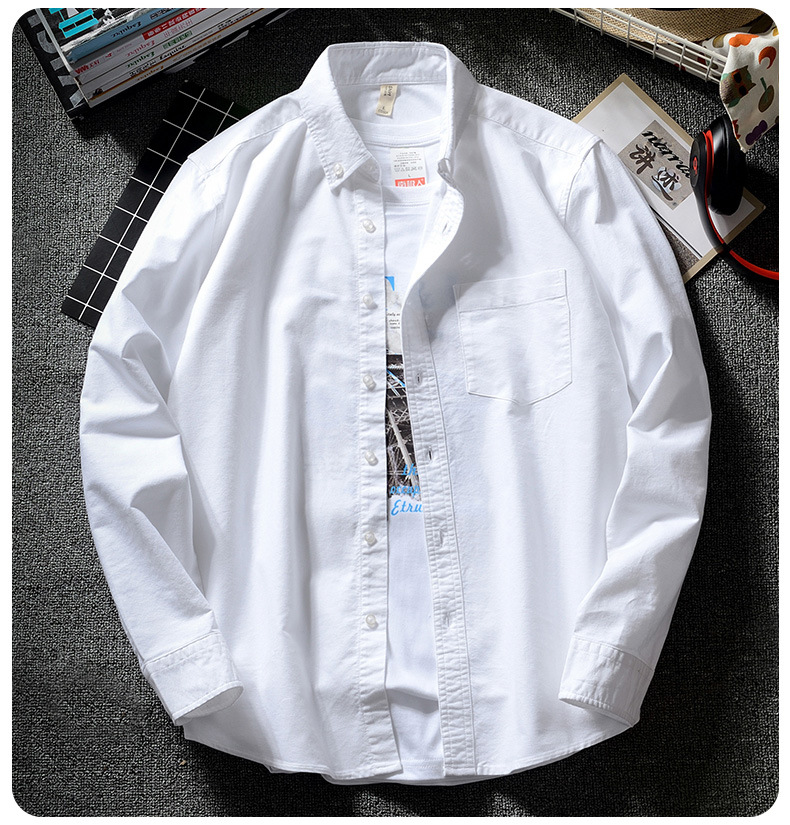 韩版男士休闲牛津纺白衬衫日系潮牌青少年学生长袖ins港风原宿春스토어 가기