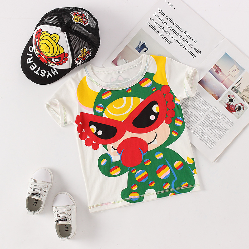 여름 신작 어린이 반팔 티셔츠 소년과 소녀를위한 유행 어린이 티셔츠 만화 반팔 티셔츠 베이비 탑 캐주얼하고 다목적스토어 가기