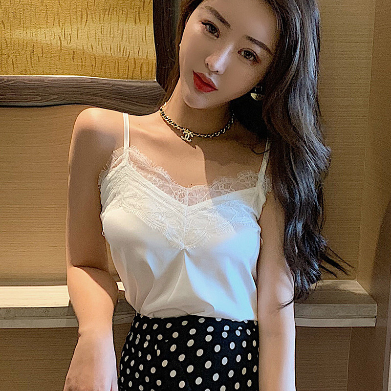 새로운 느슨한 인테리어 사이버 연예인 캐미솔 조끼 단색 레이스 스티칭 기반 섹시한 V-넥 속옷 공장 직접 공급스토어 가기