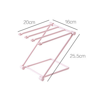 概要: 可折叠立式抹布架,PP材质,结实耐用;四杆设计,可同时挂置多条抹布,通风沥水,快速干燥;亦可收纳水杯、奶瓶等,不用时折叠收纳,节省空间。