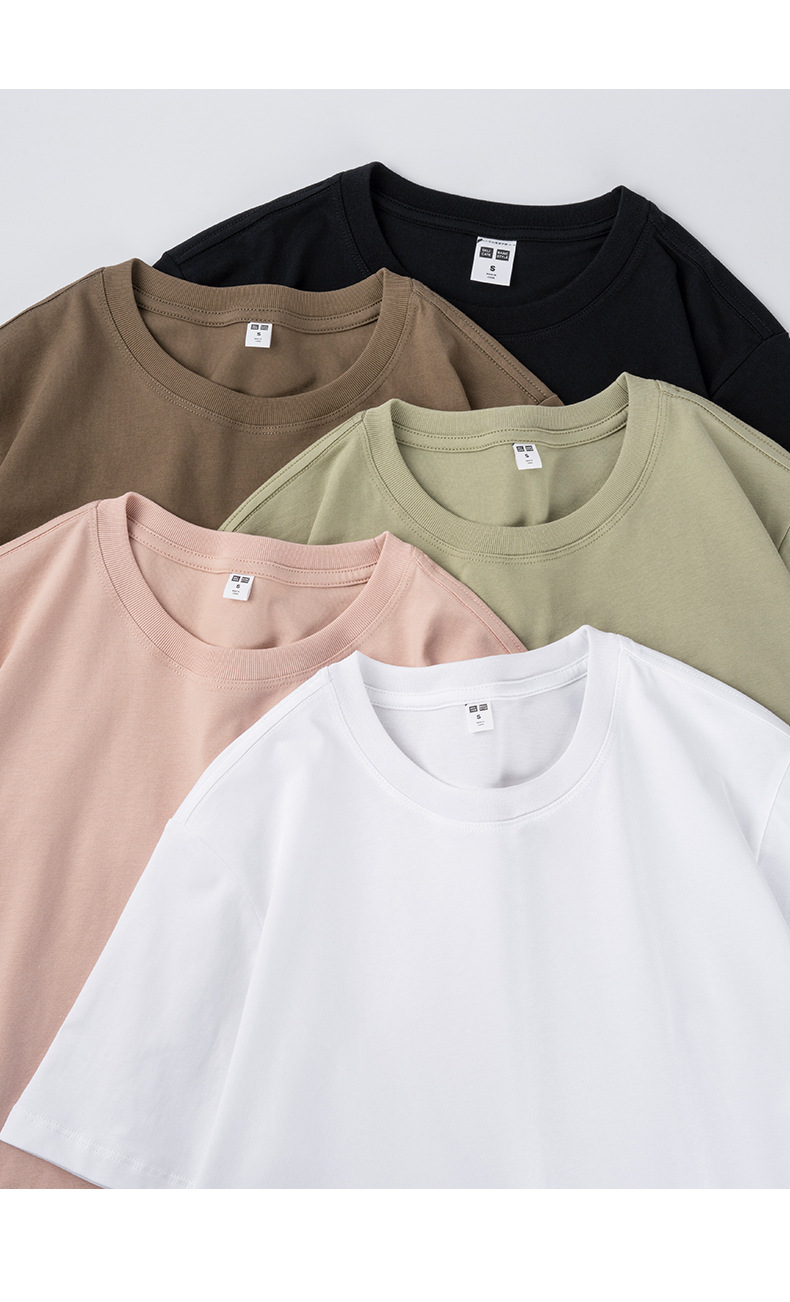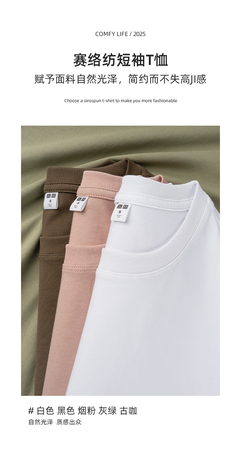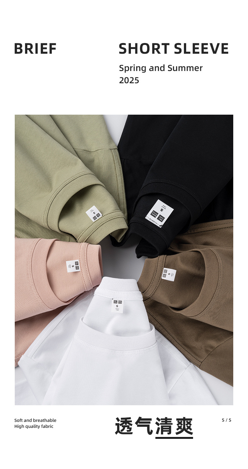 200g 열전달 흑백 얇은 반팔 티셔츠 남성용 솔리드 컬러 순수 코튼 고품질 시로 스피닝 반팔 핫 스타일 드롭 배송스토어 가기