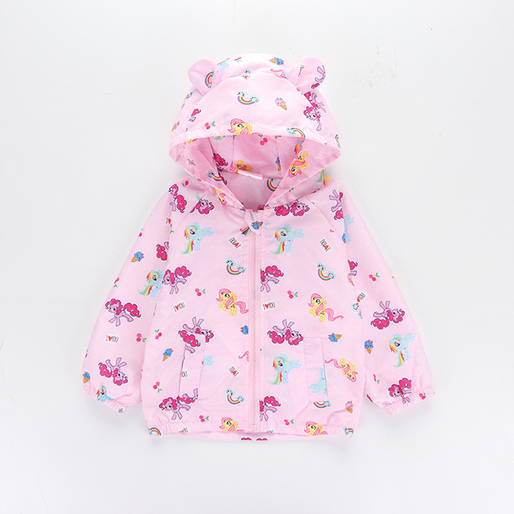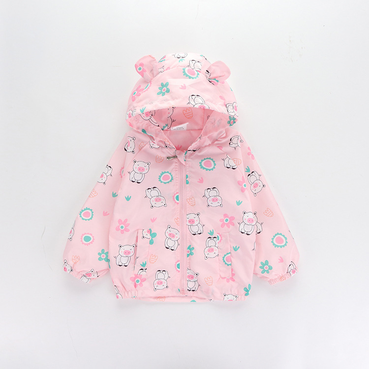 크로스보더 여아 봄가을 후드 자켓 2026 신상 얇은 스타일리쉬 한국판 만화 캐릭터 숏자켓 아동복스토어 가기