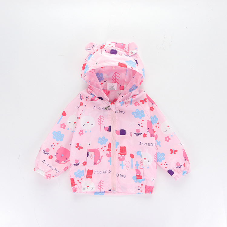 크로스보더 여아 봄가을 후드 자켓 2026 신상 얇은 스타일리쉬 한국판 만화 캐릭터 숏자켓 아동복