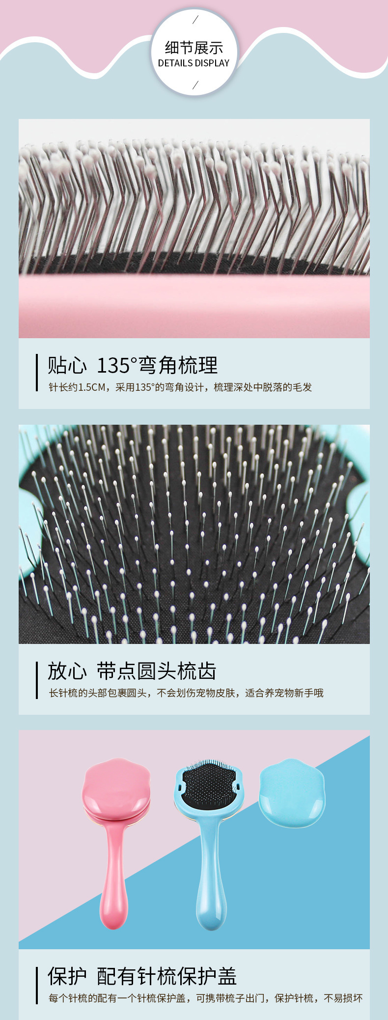 고양이 빗 제모 빗 개 빗 고양이 바늘 빗 헤어 리무버 제모 도구 애완 동물 빗 용품 6