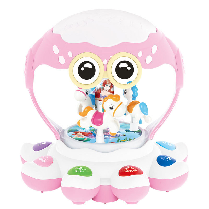 폴라로이드 드림 오션 음악 문어 핸드 드럼 어린이 조기 교육 기계 전기 범용 회전 드럼 장난감 1803B
