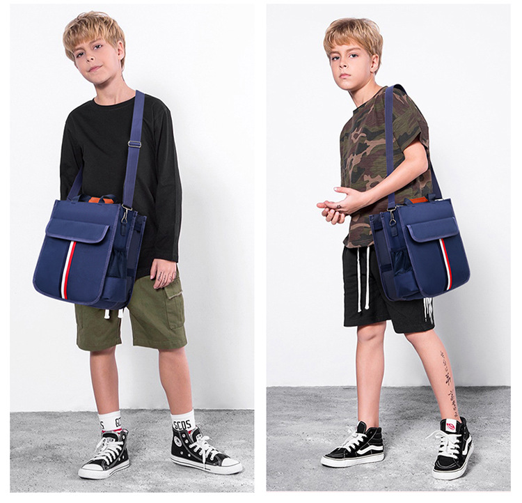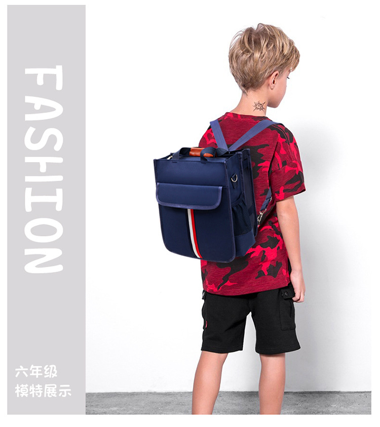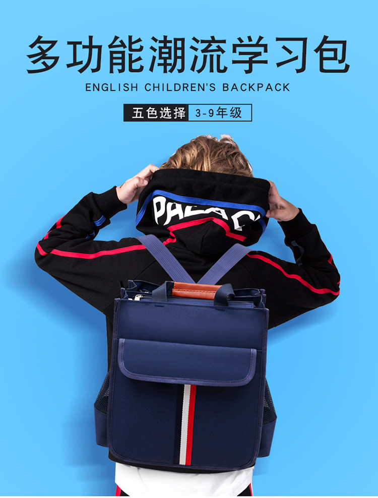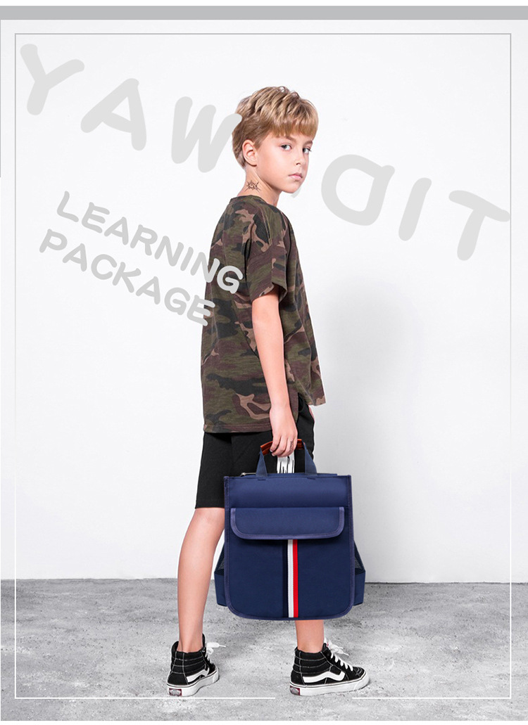 도매 초등학생 어린이 학원 가방, 새로운 영국 스타일의 빨간색, 흰색, 파란색 줄무늬 학원 가방, 초등학생 책가방, LO 프린팅스토어 가기