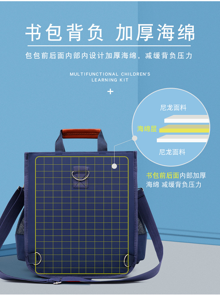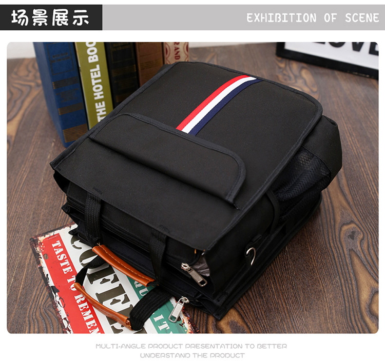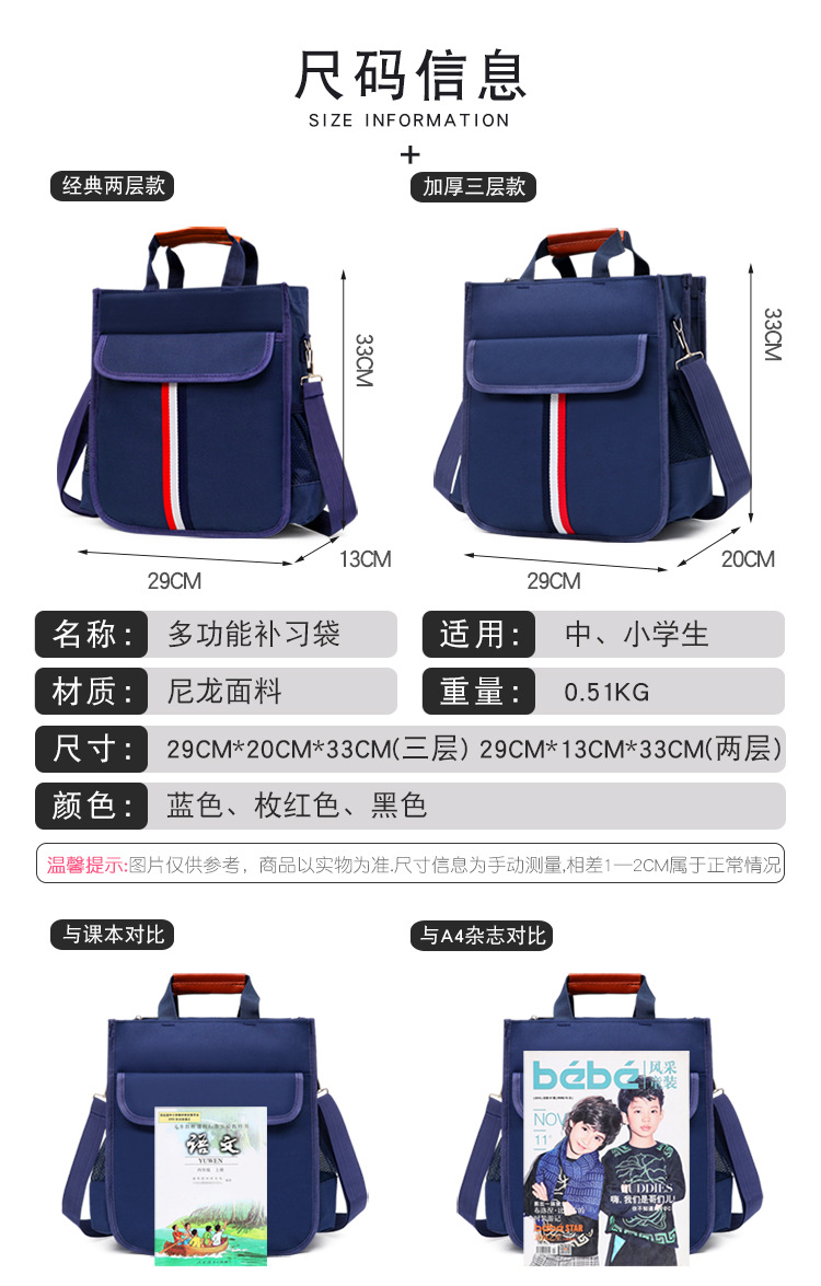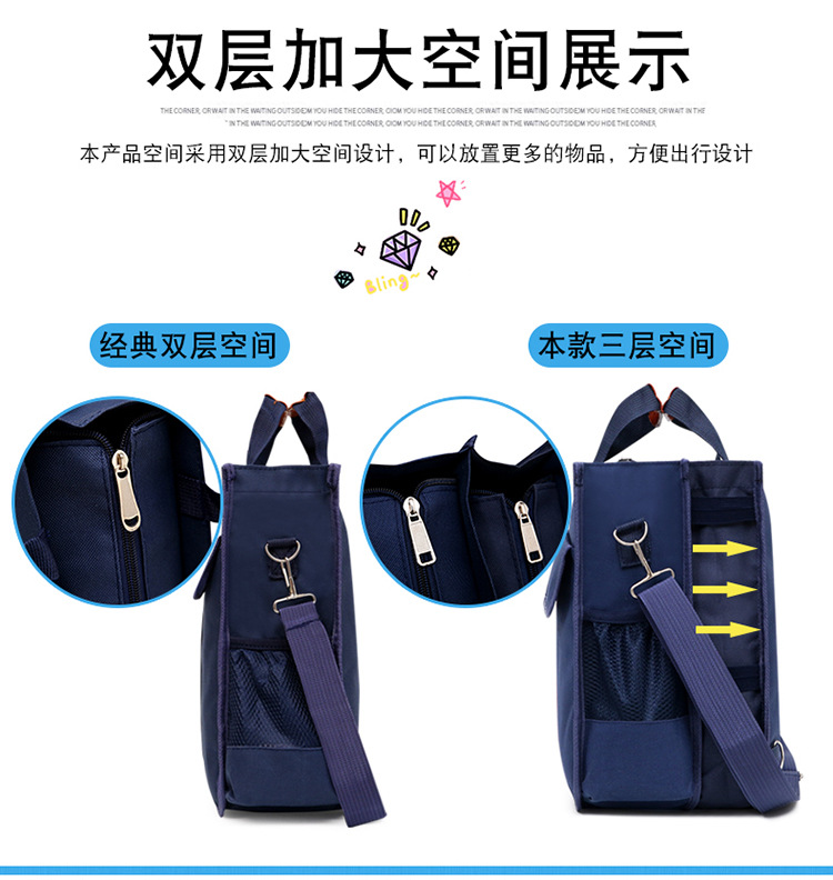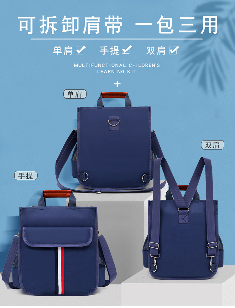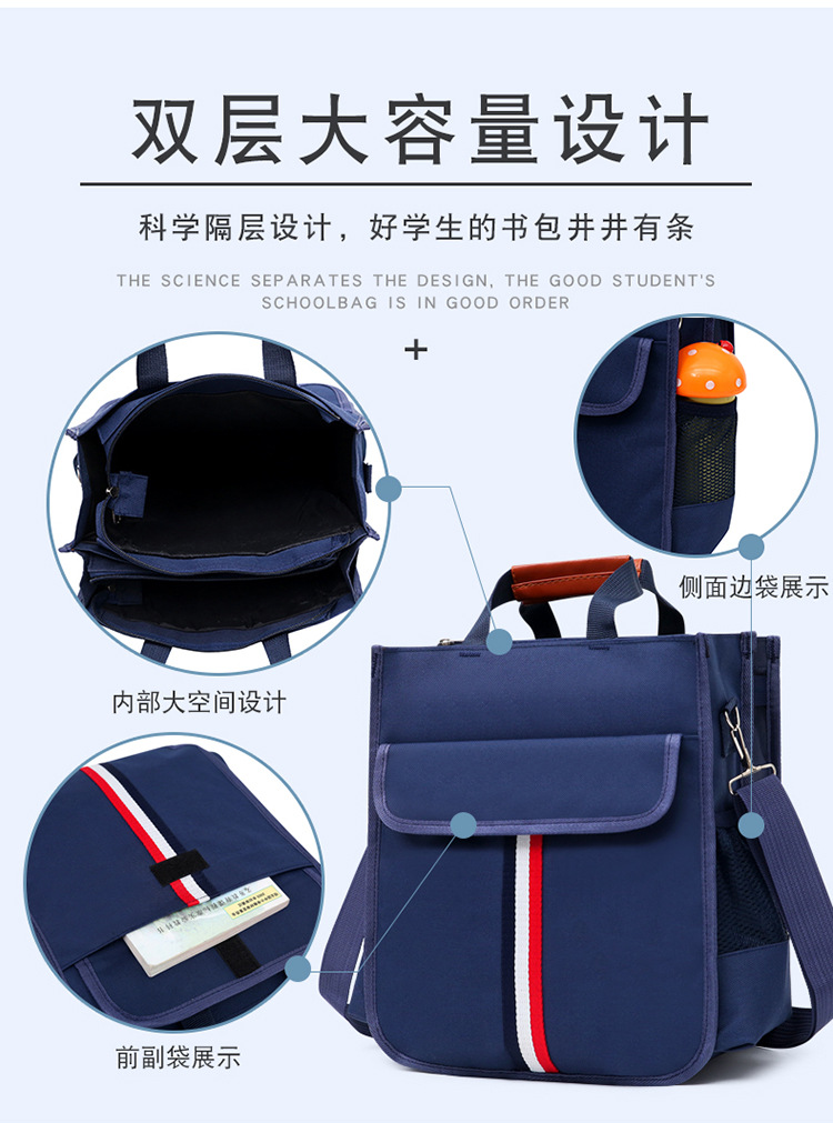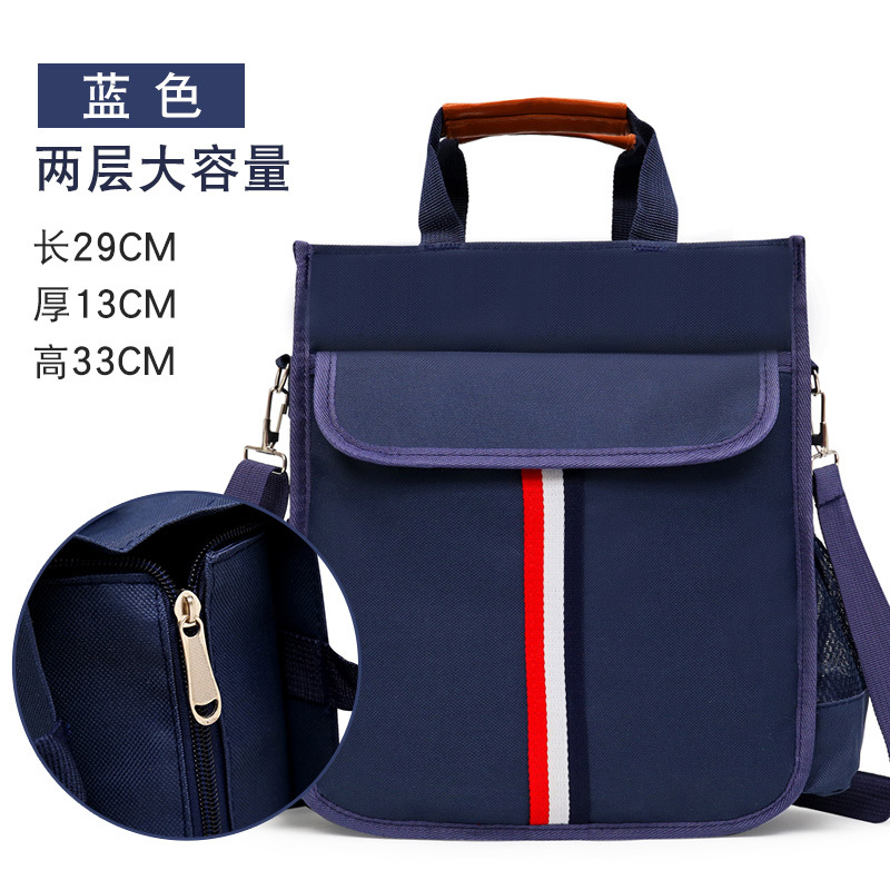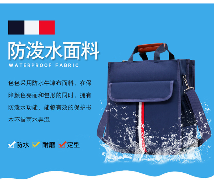 新款小学生书袋A4帆布防水手拎带补课包双侧袋补习包大容量手提袋