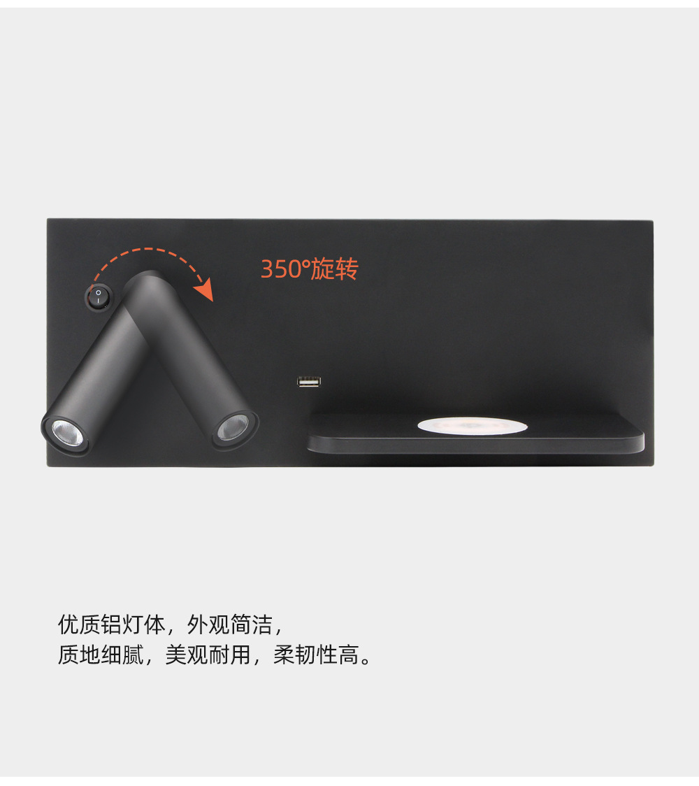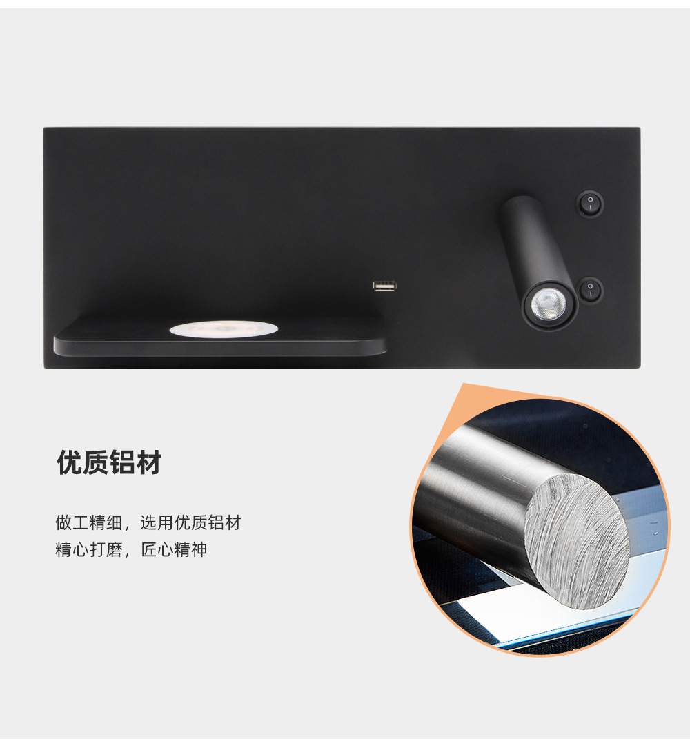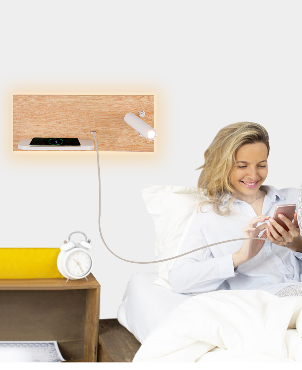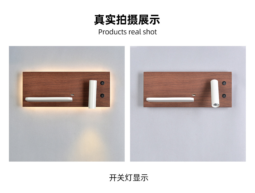 현대 미니멀 호텔 우드 그레인 분위기 침대 옆 램프 침실 선반 USB 무선 충전 LED 독서 벽 조명스토어 가기