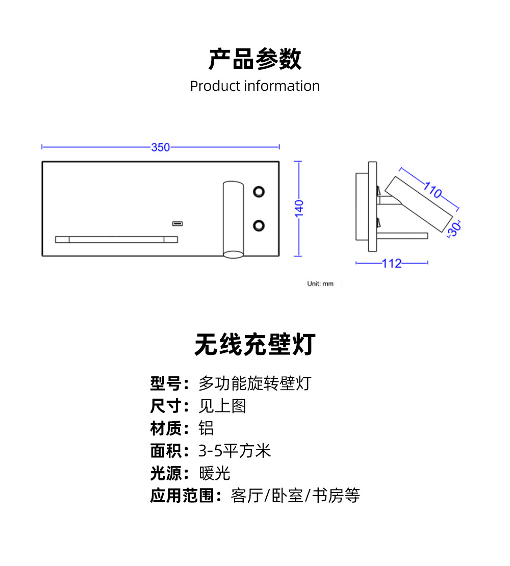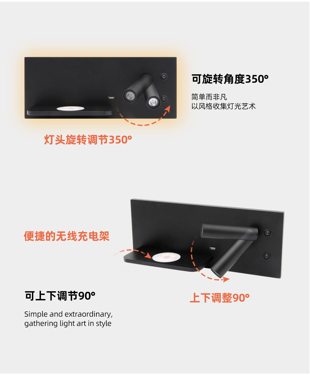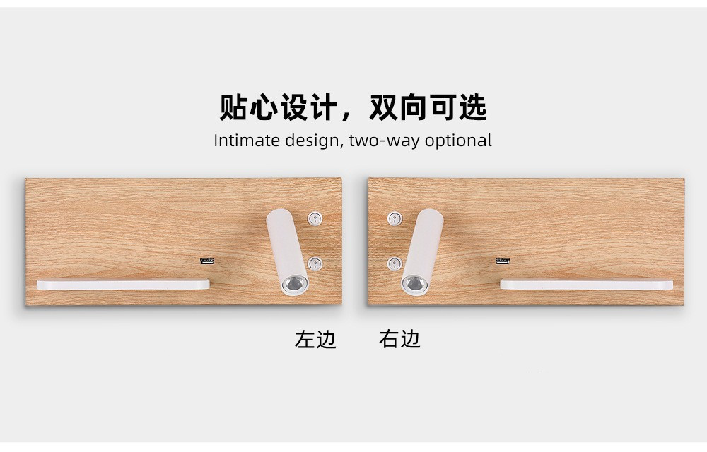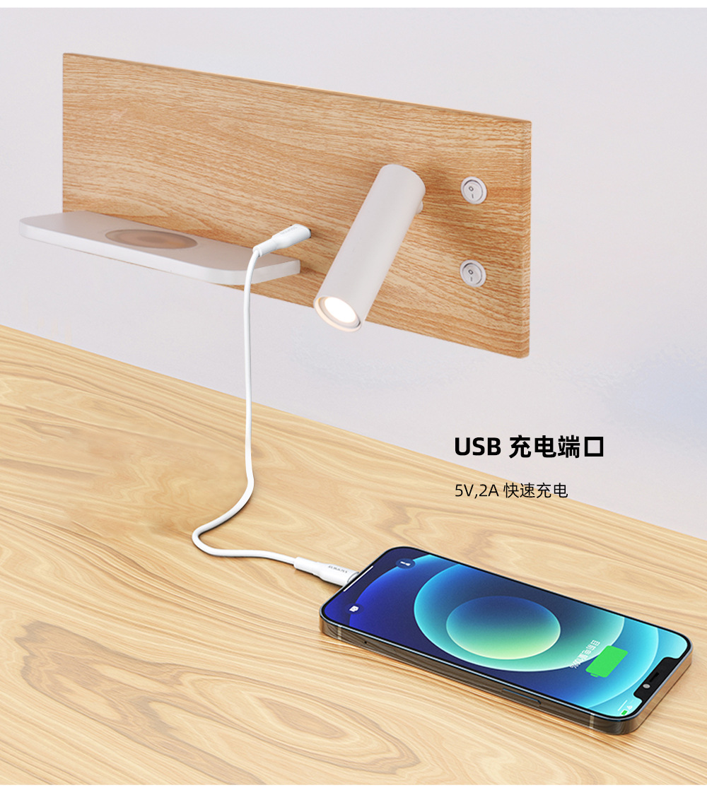 현대 미니멀 호텔 우드 그레인 분위기 침대 옆 램프 침실 선반 USB 무선 충전 LED 독서 벽 조명