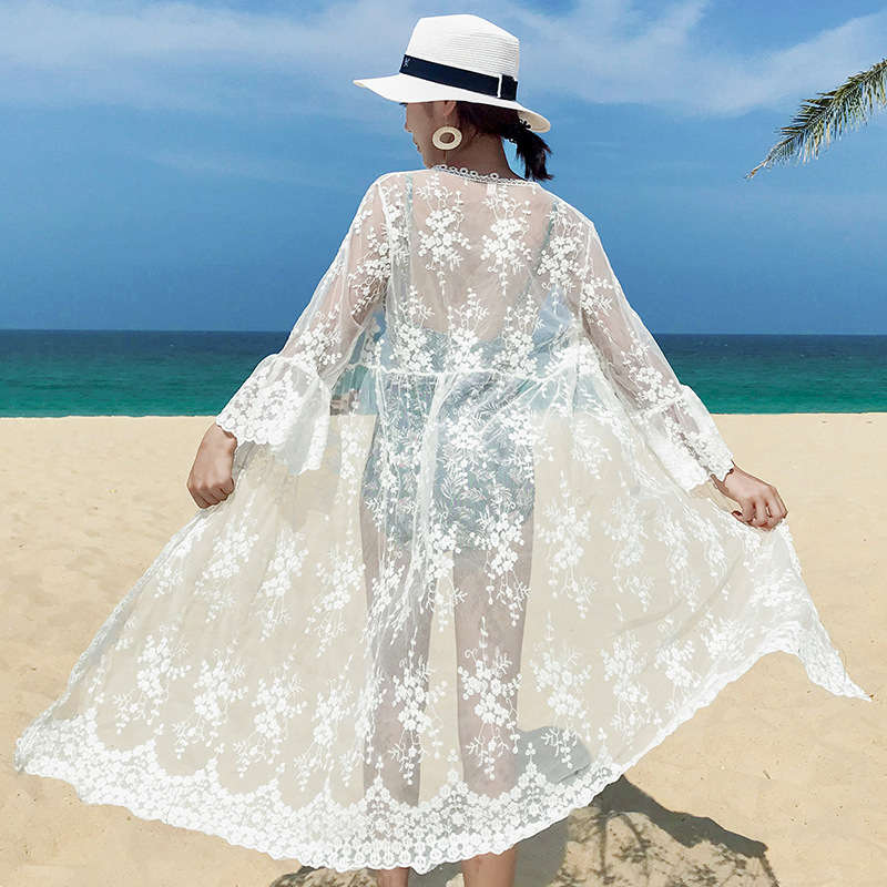 여름 해변 수영 레이스 자외선 차단제 의류 스커트 카디건 탑 중간 길이 울트라 씬 슈퍼 페어리 재킷