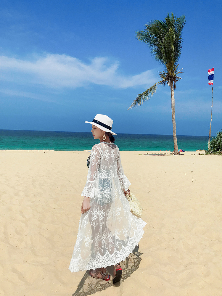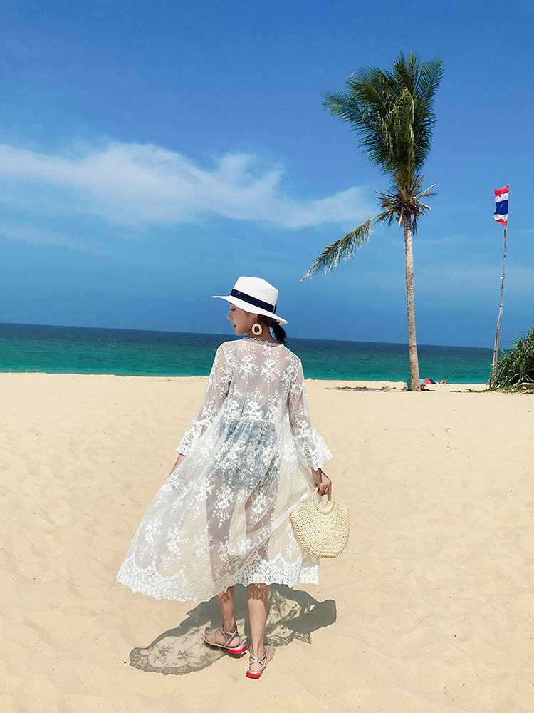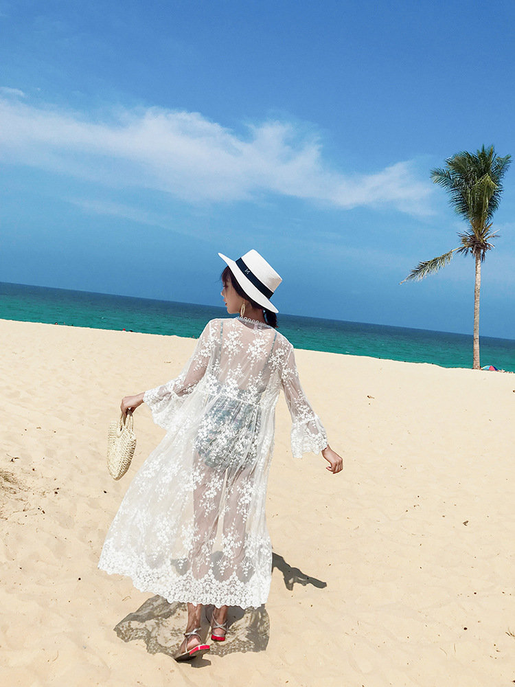 여름 해변 수영 레이스 자외선 차단제 의류 스커트 카디건 탑 중간 길이 울트라 씬 슈퍼 페어리 재킷스토어 가기