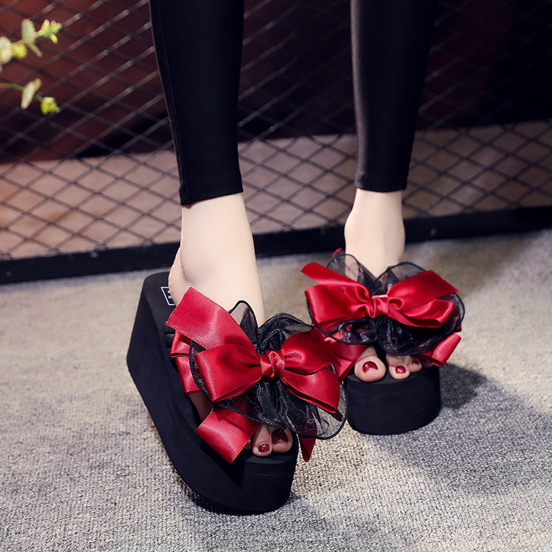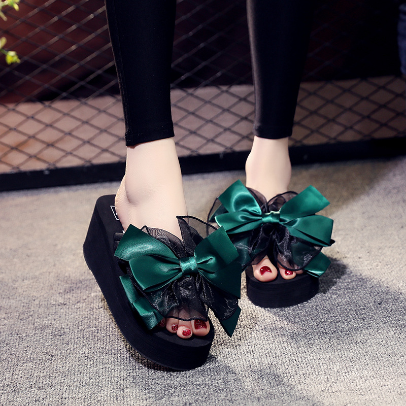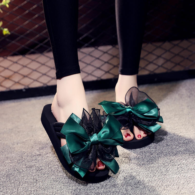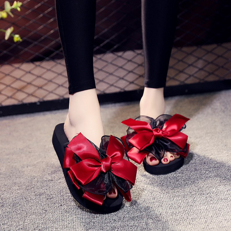 신선한 스타일 한국 스타일 달콤한 보우 플립 플롭 여성용 여름 플랫 미끄럼 방지 소프트 캐주얼 플립 플롭 샌들