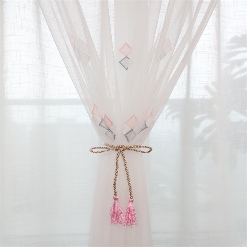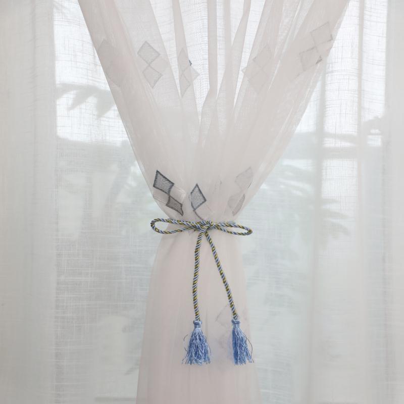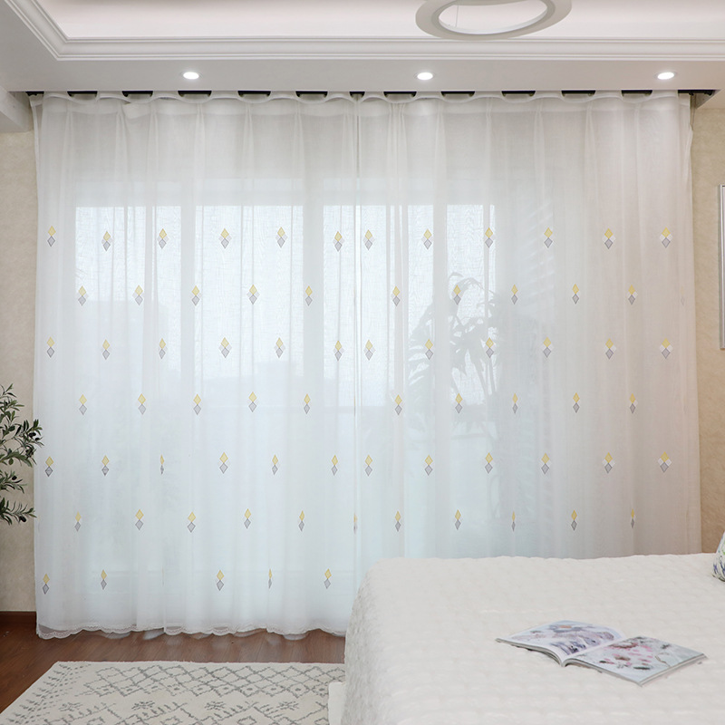 새로운 디자인의 마름모꼴 자수 거즈, 거실 및 침실 커튼용 거즈, 투광 흰색 거즈 커튼, 칸막이 커튼, 도매 판매 가능