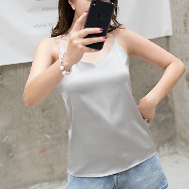 조끼 여성용 실키 실크 슬링 새틴 이너베이스 셔츠 짧은 아우터 V넥 슬림핏 올매치