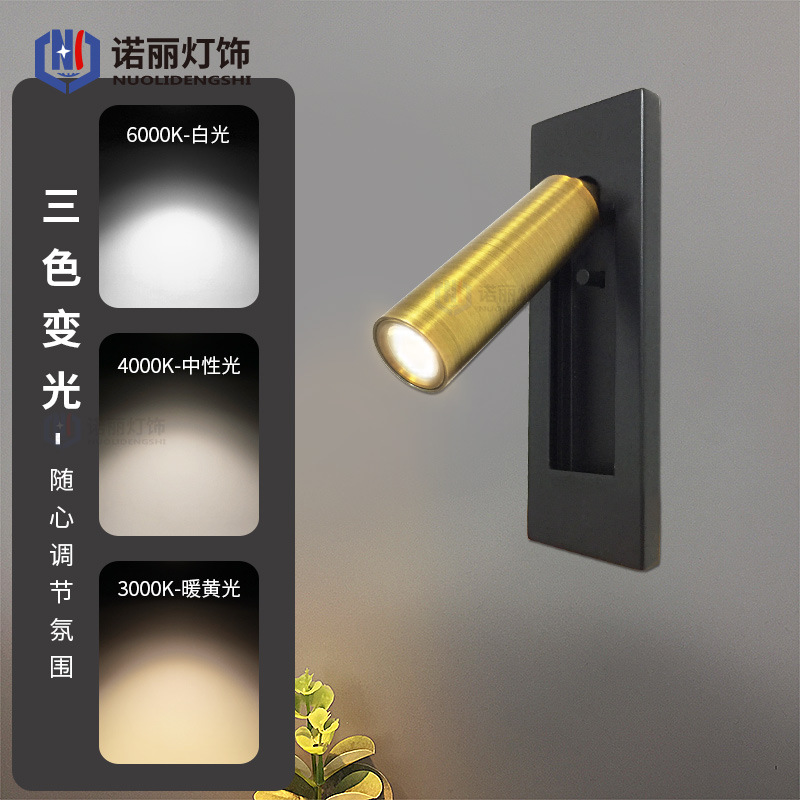 모든 구리 중국 회전 램프 호텔 침대 옆 LED 램프 벽 램프 RV 읽기 범용 헤드 벽 램프 360 도 회전 램프