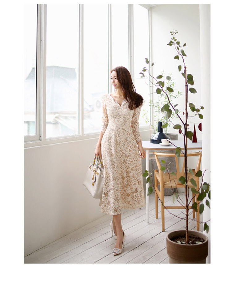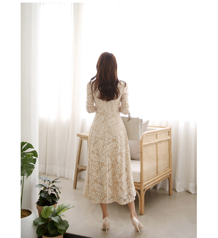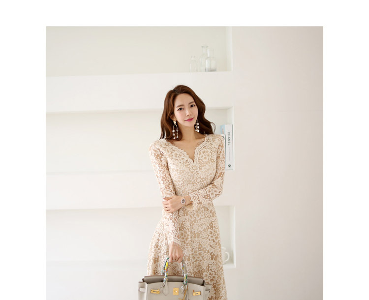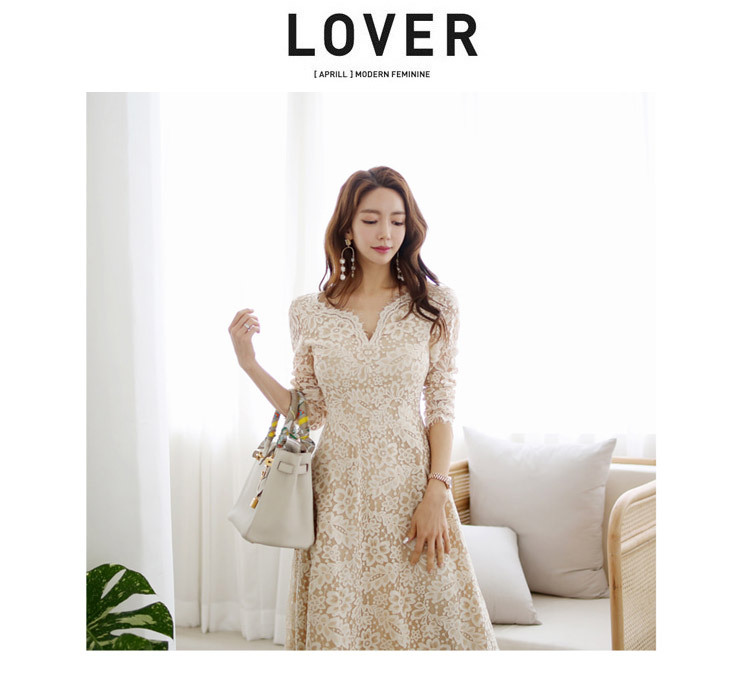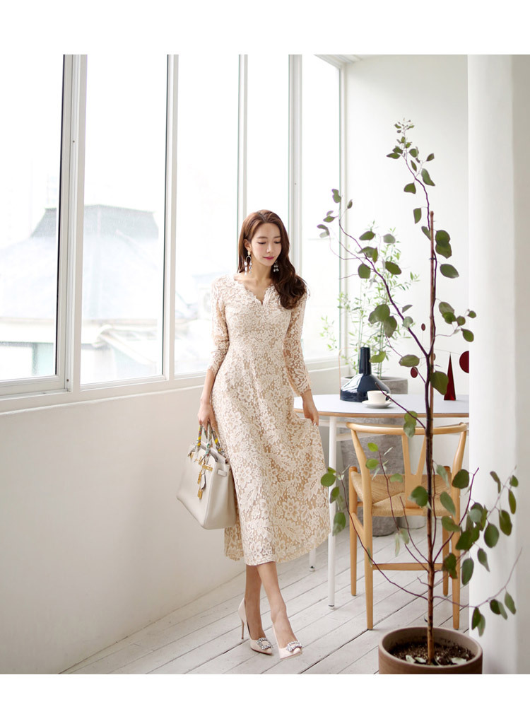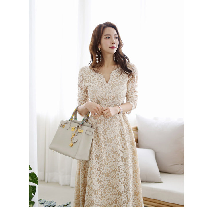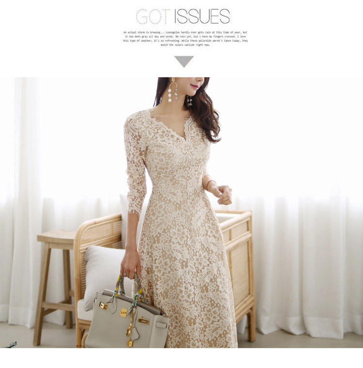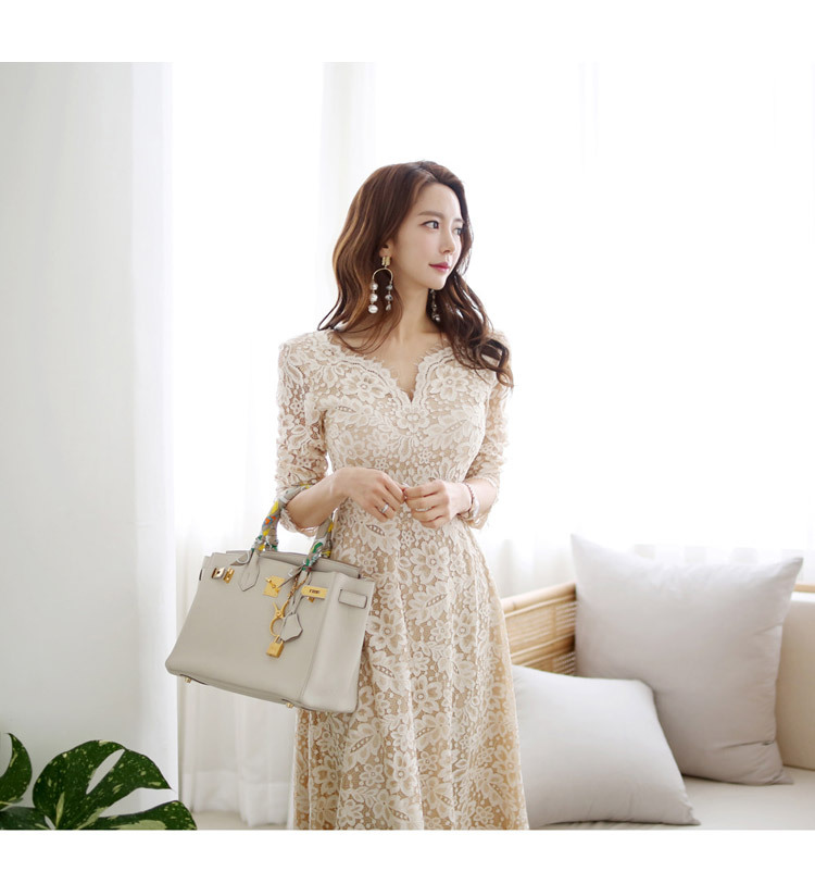 프랑스 레이스 원피스 국경 여성 의류 여름 새로운 한국 스타일 사교계 우아한 V 넥 패션 레이스 대형 스윙 원피스스토어 가기