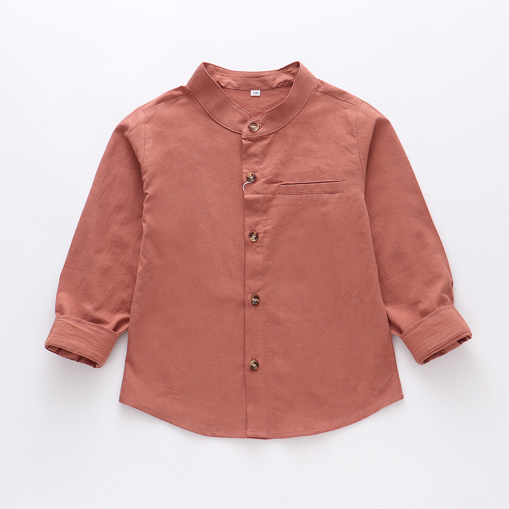 2025 새로운 솔리드 컬러 어린이 면화 셔츠 아기 캐주얼 셔츠 90-160cm 외국 스타일 탑