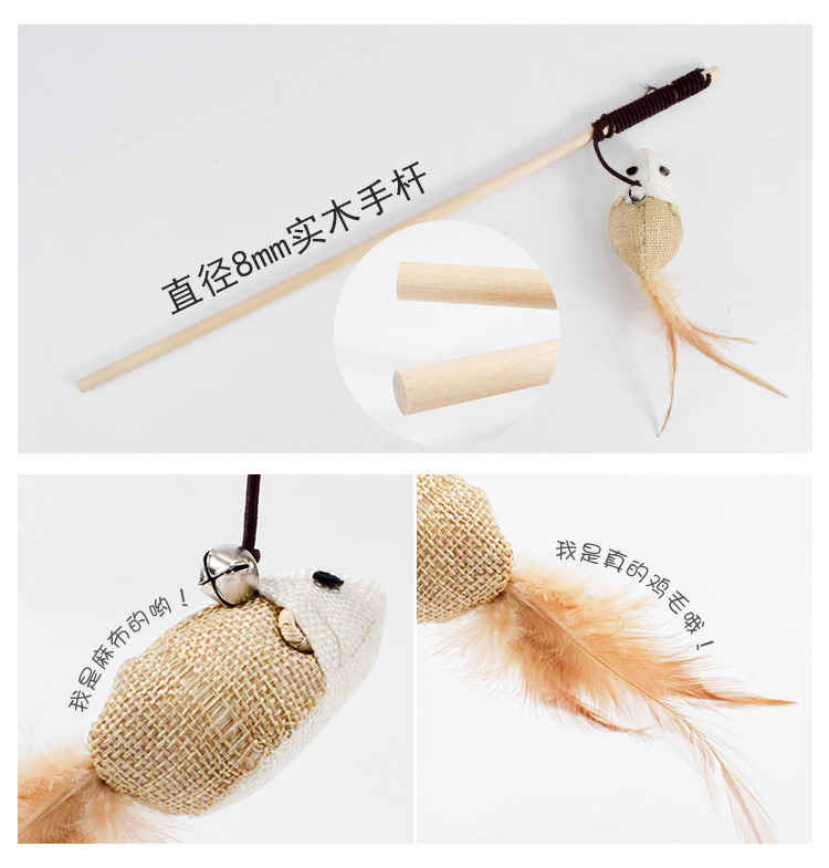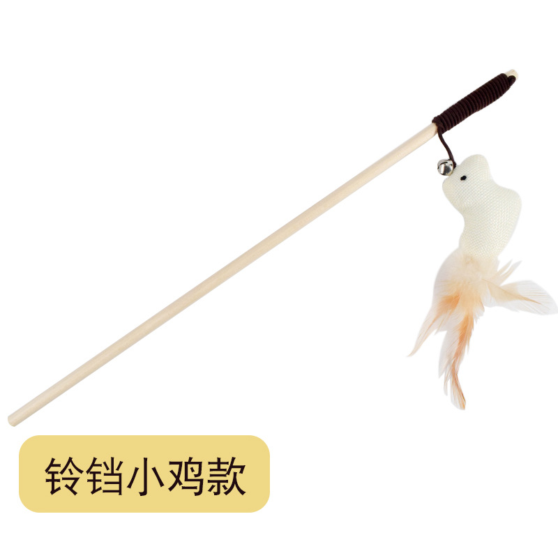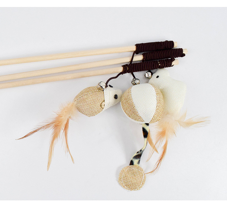 애완 동물 용품 공장 직접 고양이 장난감 통나무 벨 고양이 스틱 나무 깃털 린넨 닭 고양이 스틱