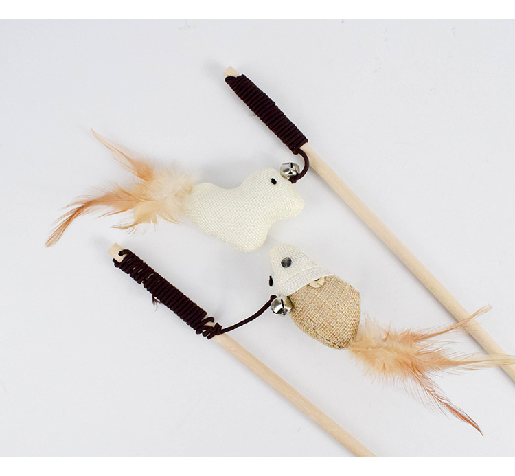 애완 동물 용품 공장 직접 고양이 장난감 통나무 벨 고양이 스틱 나무 깃털 린넨 닭 고양이 스틱스토어 가기