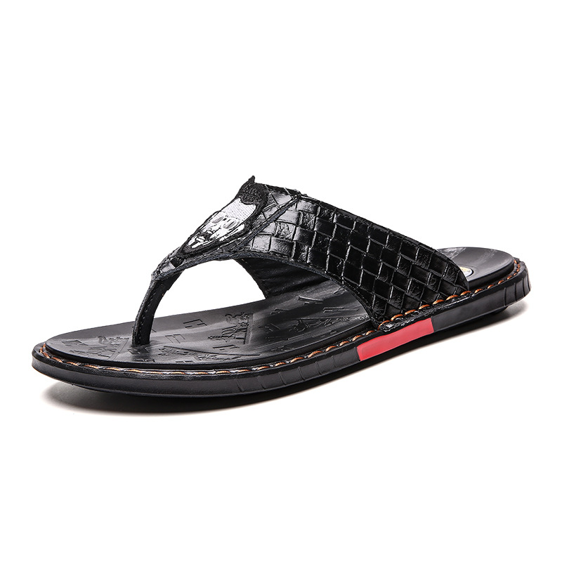2025 경량 여름 신상 남성용 가죽 슬리퍼 영국 스타일 패션 남성 샌들 미끄럼 방지 가죽 비치 슈즈스토어 가기