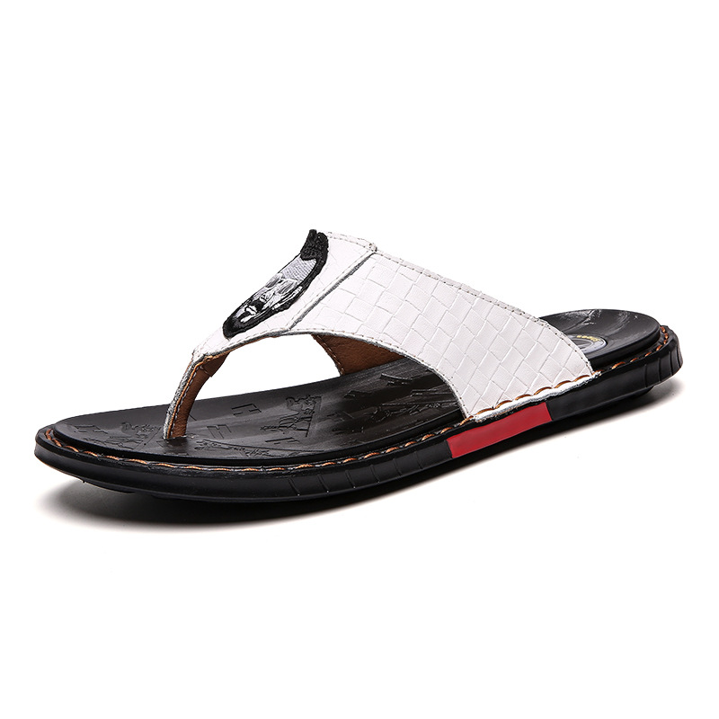 2025 경량 여름 신상 남성용 가죽 슬리퍼 영국 스타일 패션 남성 샌들 미끄럼 방지 가죽 비치 슈즈
