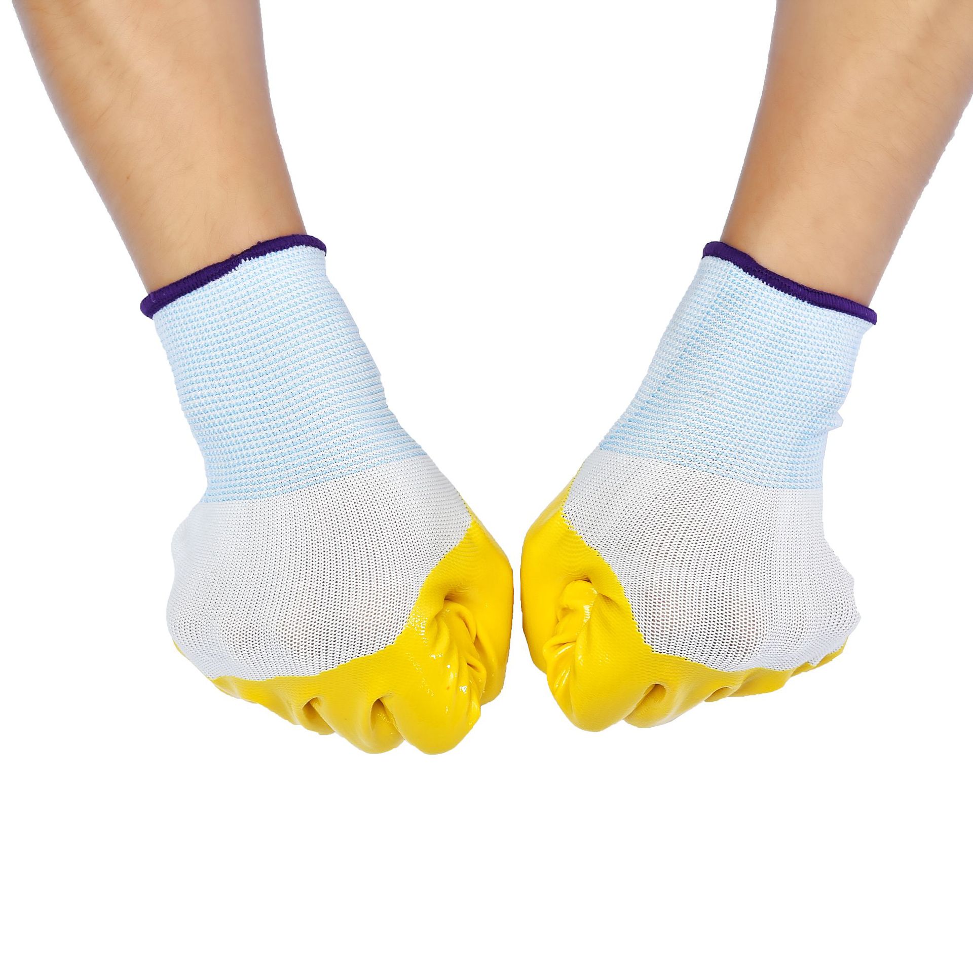 니트릴 장갑 노동 보호 13 핀 화이트 나일론 내마모성 미끄럼 방지 Ding Qing 딥 코팅 고무 라인 주름 장갑 제조 업체 도매스토어 가기