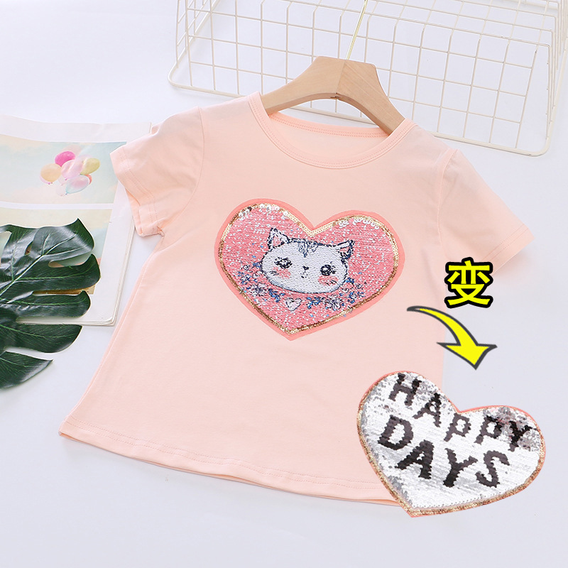 2025 국경 간 인기 소녀 스팽글 가역 색상 변경 티셔츠 반팔 코튼 반팔 탑 포니 유니콘스토어 가기