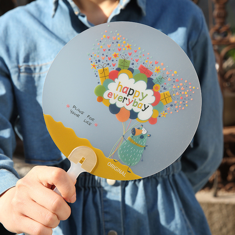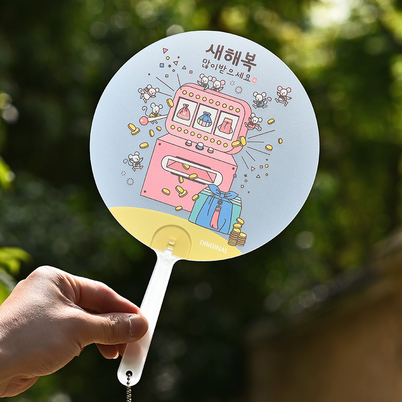 팬 만화 학생 원형 팬 휴대용 소형 팬 광고 팬 원형 팬 플라스틱 작은 팬 창조적 인 어린이 팬