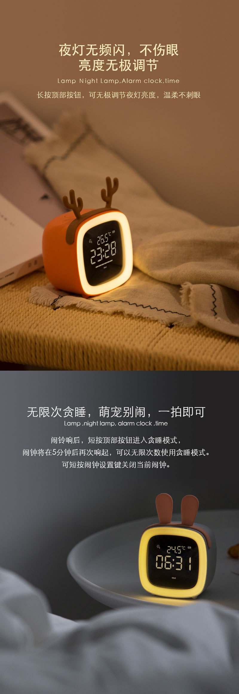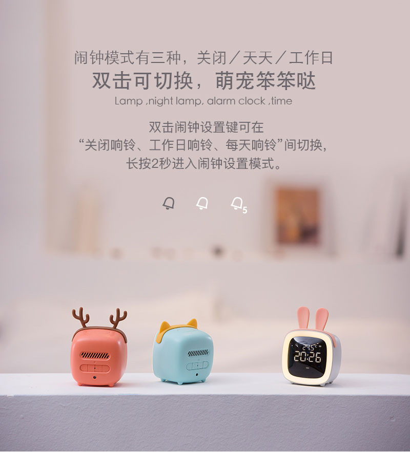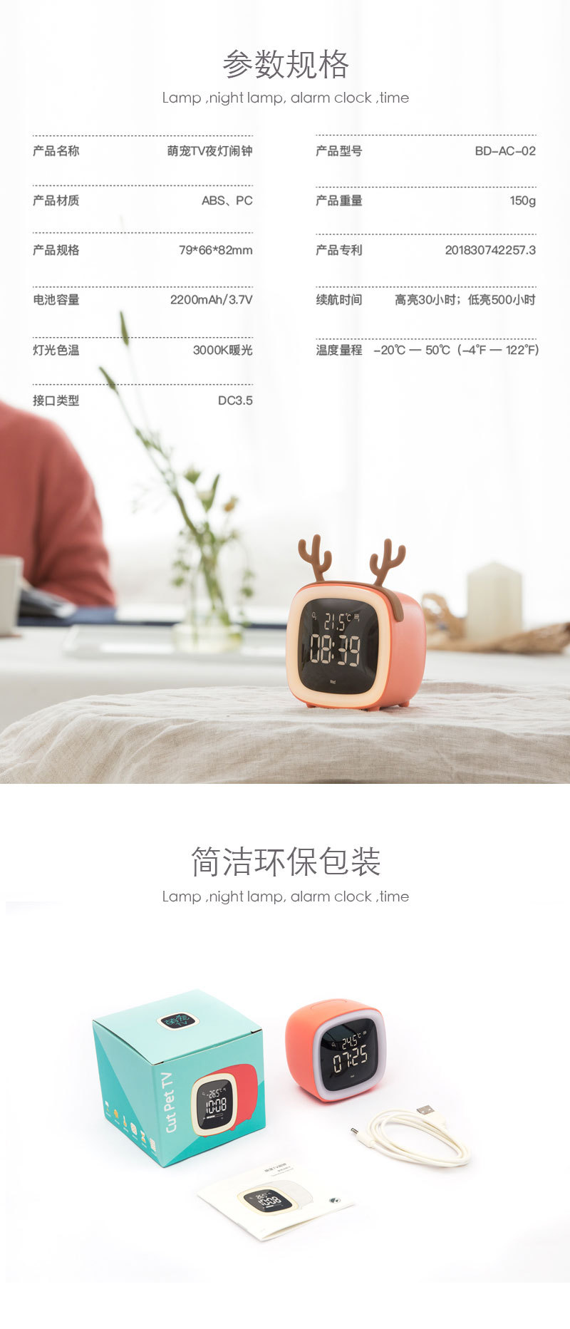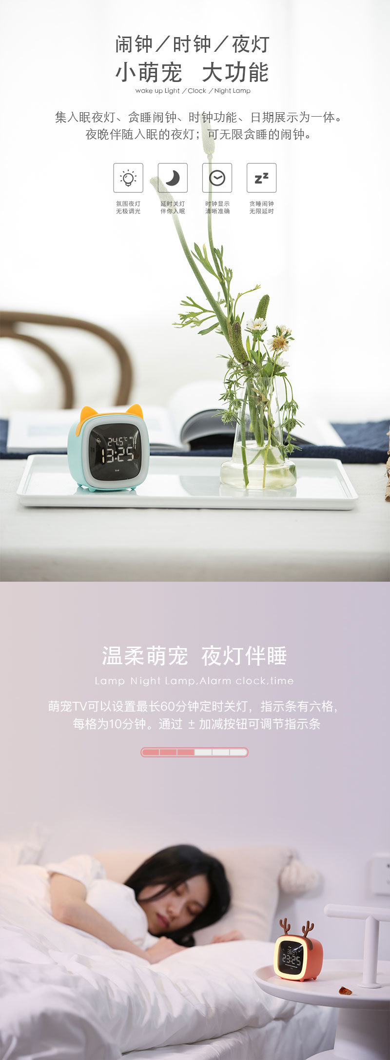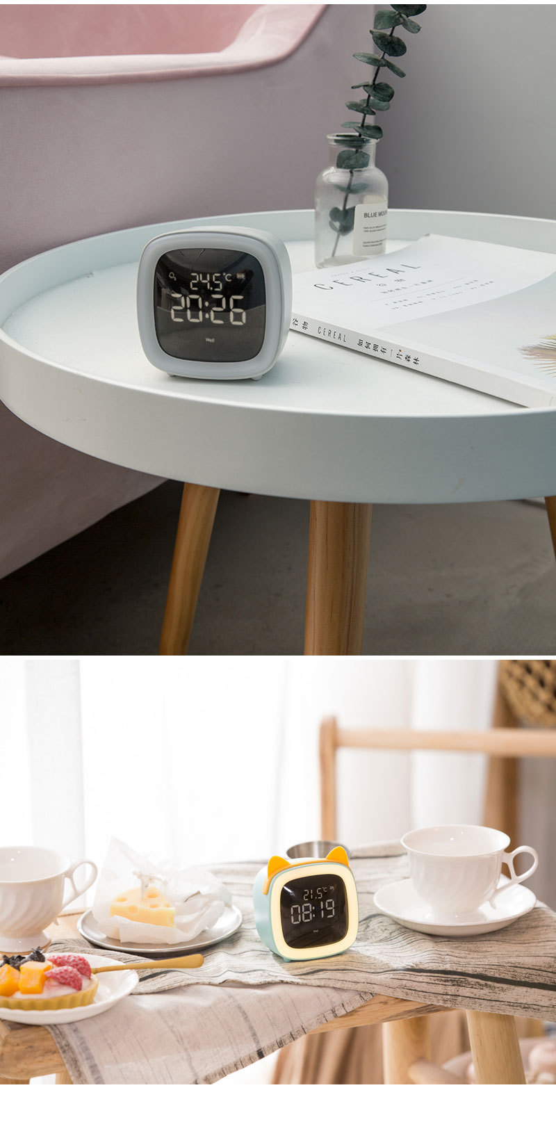 반 창조적 인 귀여운 애완 동물 TV 알람 시계 웨이크 업 라이트 침실 분위기 만화 음성 제어 Led 시계 알람 시계 충전 침대 옆스토어 가기
