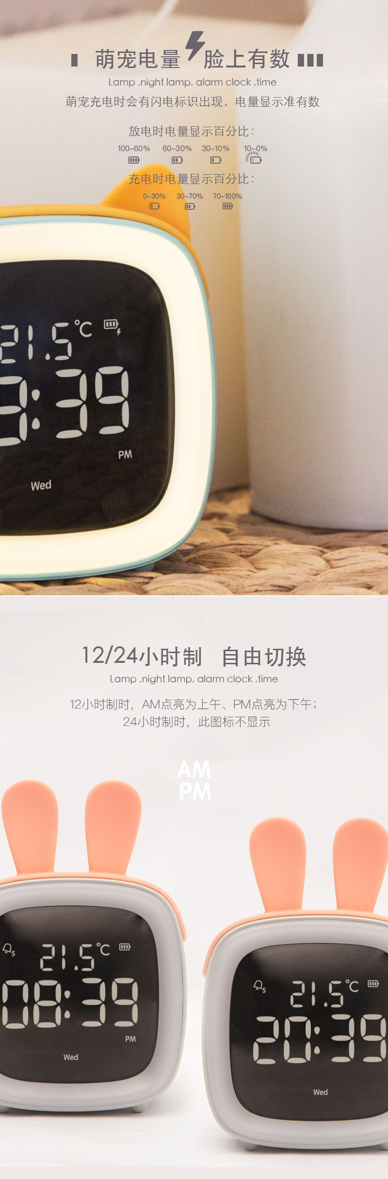 반 창조적 인 귀여운 애완 동물 TV 알람 시계 웨이크 업 라이트 침실 분위기 만화 음성 제어 Led 시계 알람 시계 충전 침대 옆