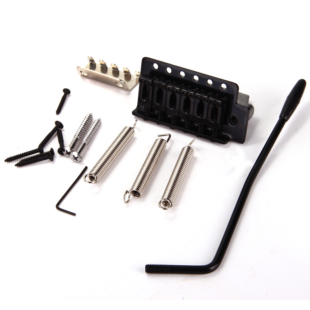包裹内容:琴桥挂钩螺丝2个、琴桥挂钩1个、单摇颤音秆1根、挂钩弹簧3根、固定琴桥螺丝6根 、1.5MM内六角扳手1个、整桥1块