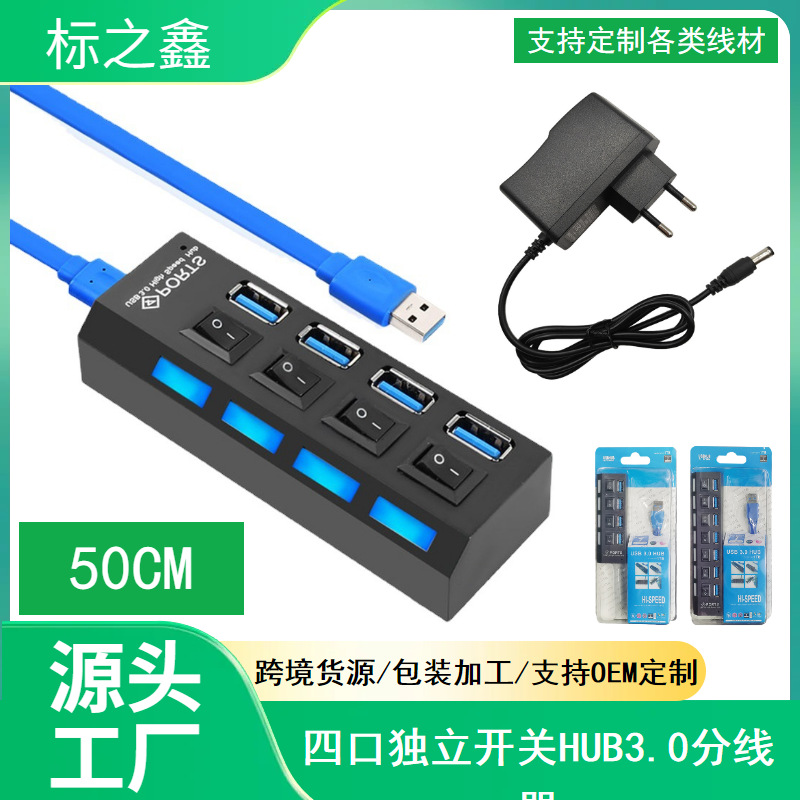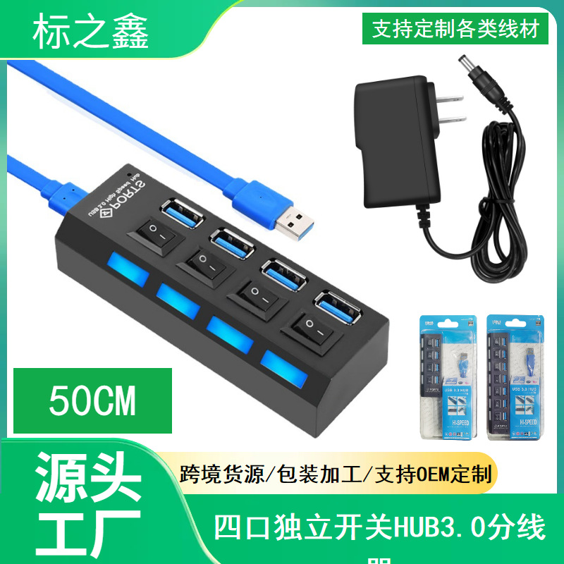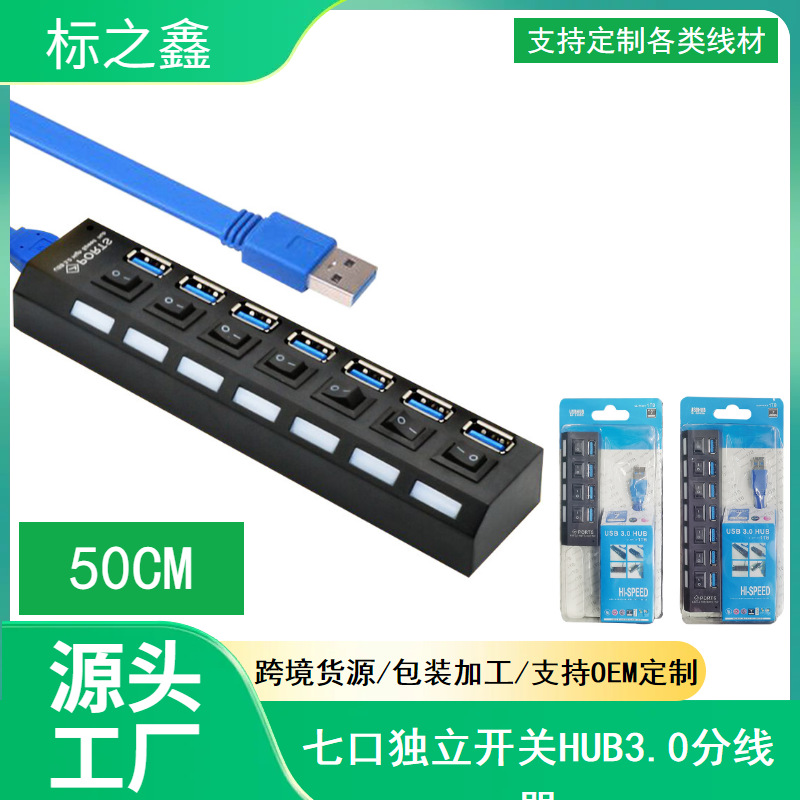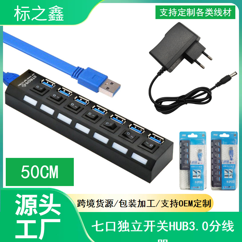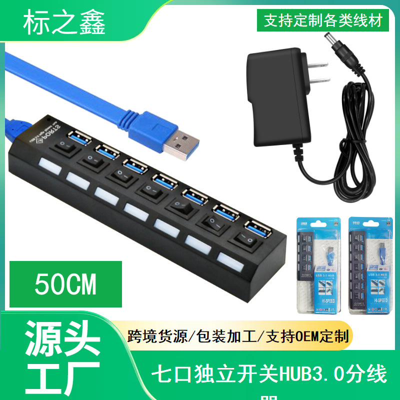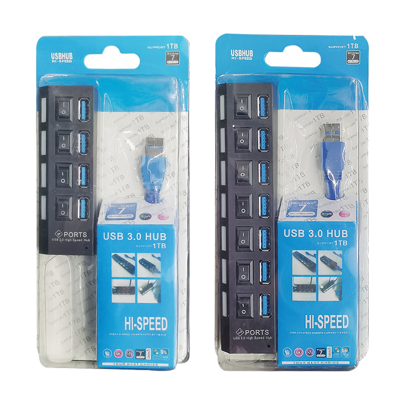공장 USB3.0 허브 스플리터 7-포트 4-독립 스위치가있는 옵션 허브 외부 전원 공급 장치 장착 가능스토어 가기