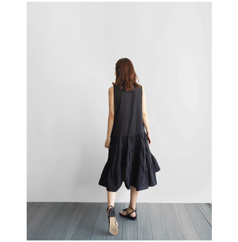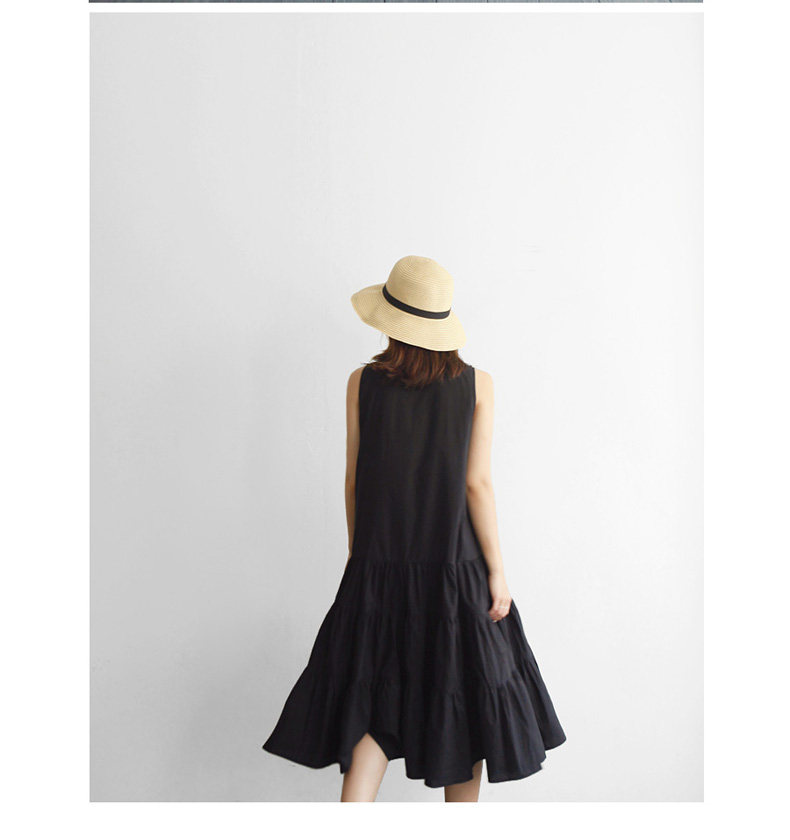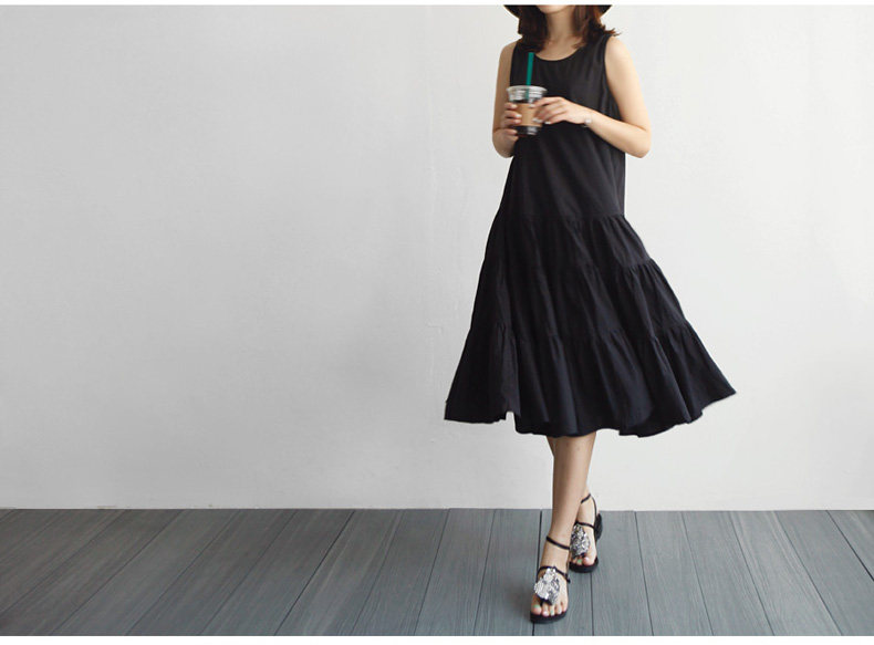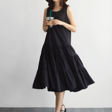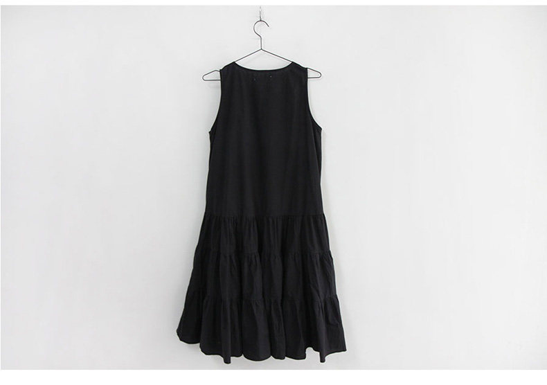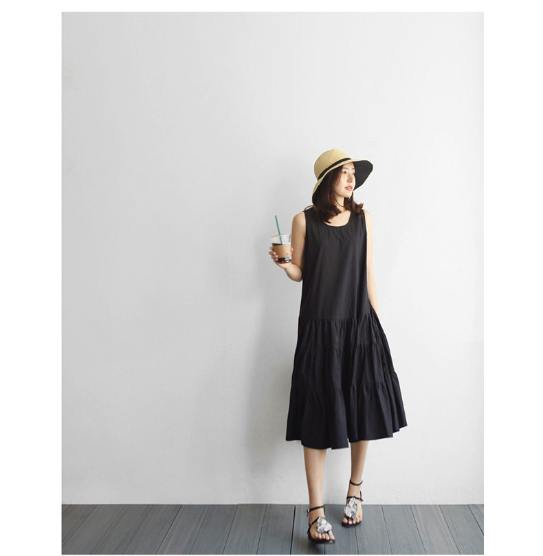 새로운 여름 민소매 모리 여성의 예술적 긴 케이크 스커트 린넨 코튼 린넨 원피스 베이스 캐미솔 롱 스커트