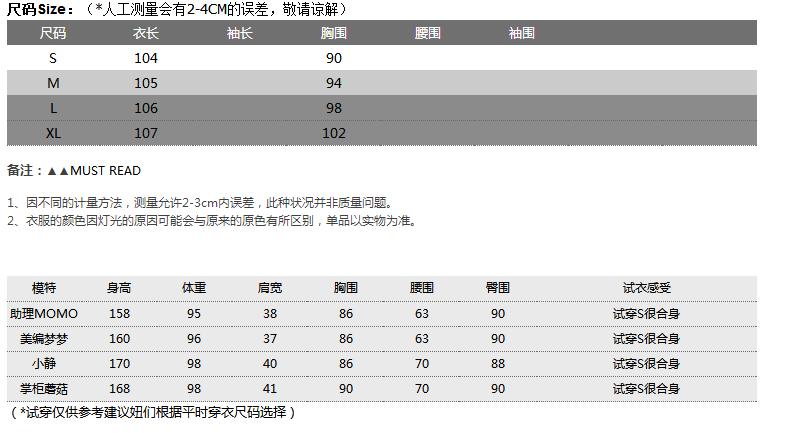 ※ 以上尺寸为实物人工测量,因测量当时不同会有1-2cm误差,相关数据仅作参考,以收到实物为准。