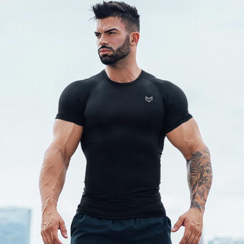 근육 운동복 반팔 속건 운동복 달리기 훈련 탄성 속건 스타킹 남성 스포츠 티셔츠 여름스토어 가기