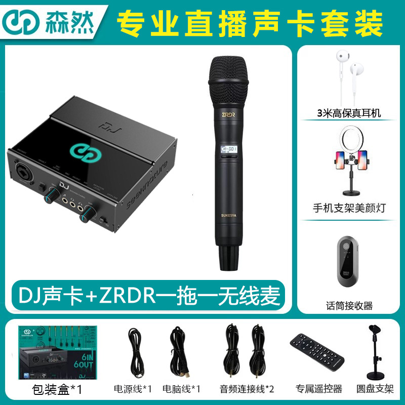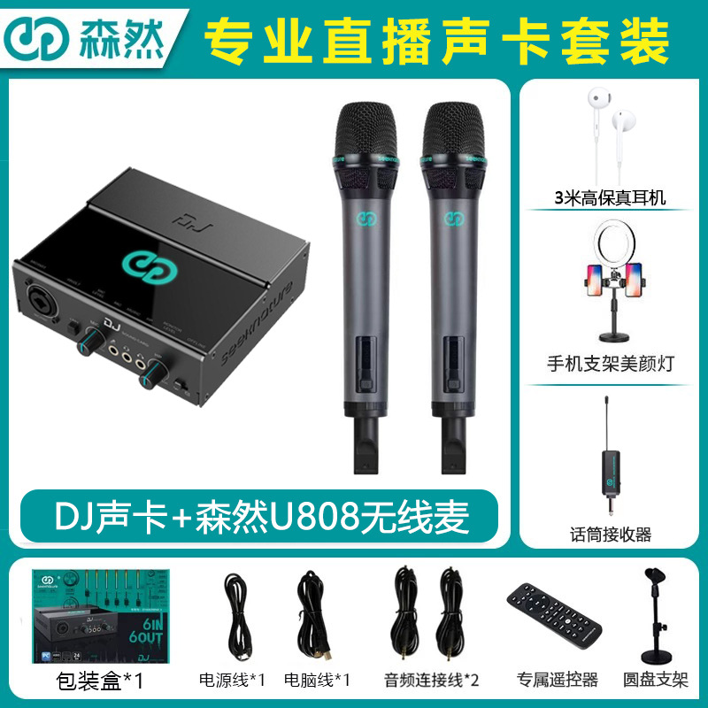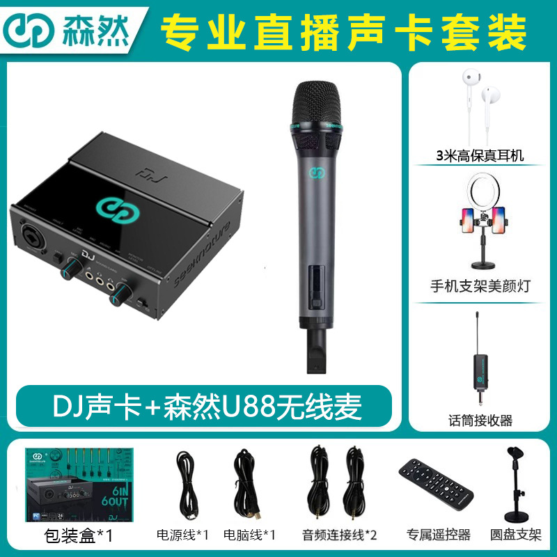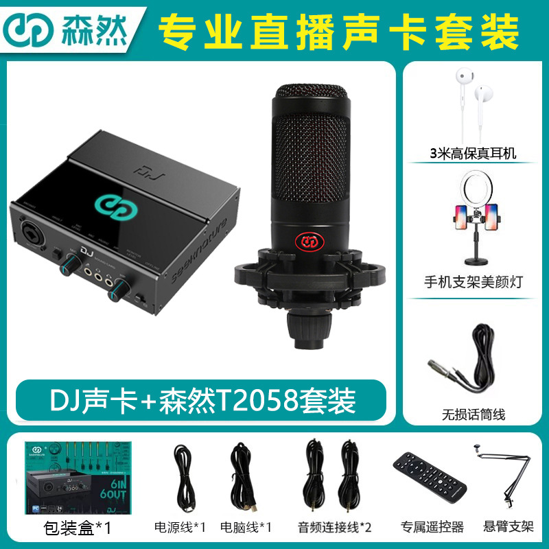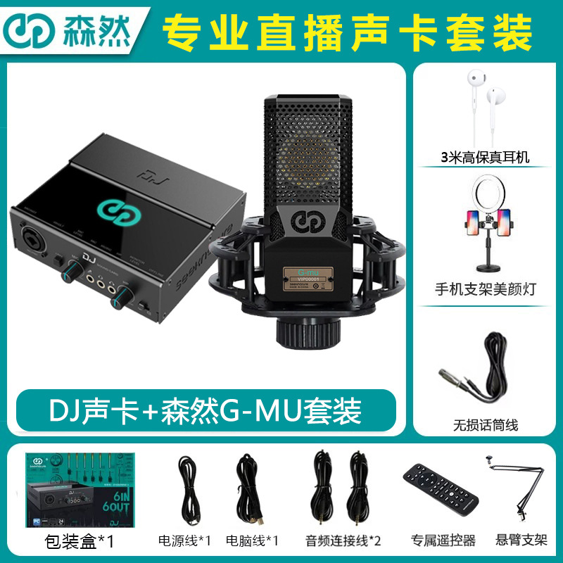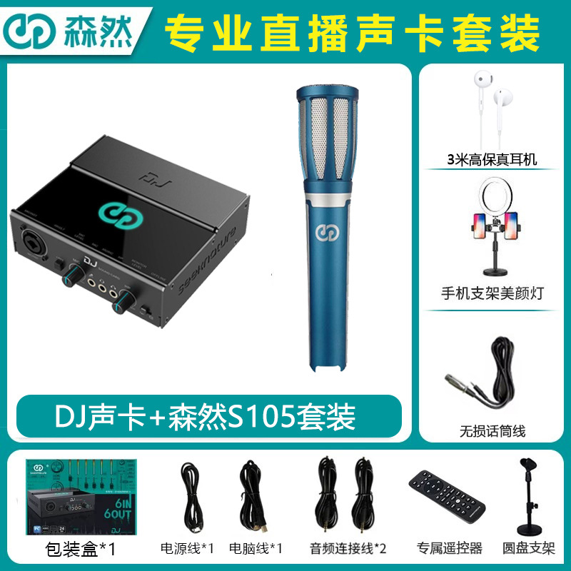 센란보바 DJ 사운드 카드 컴퓨터 휴대폰 라이브 방송용 유니버설 앵커 인터넷 연예인 야외 마이크 풀세트스토어 가기