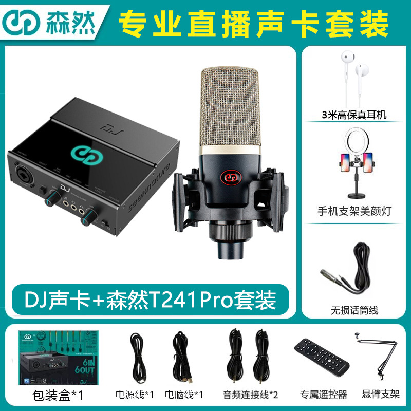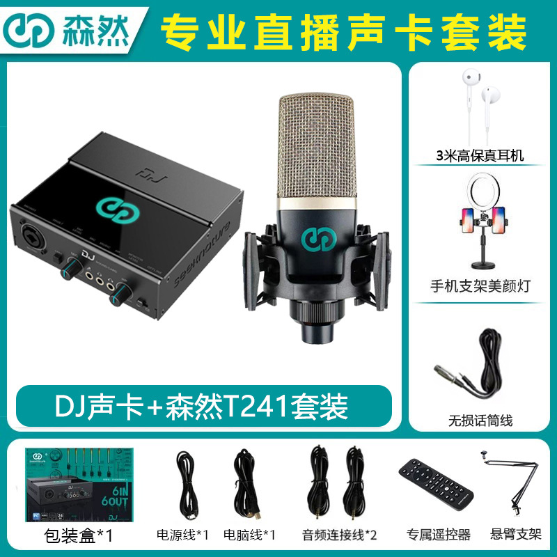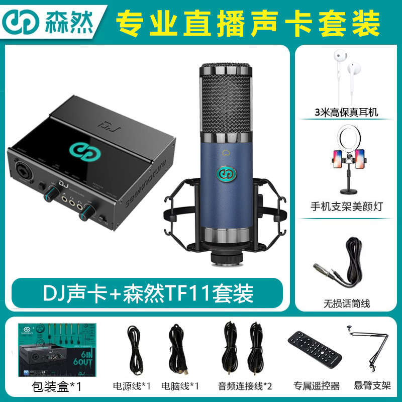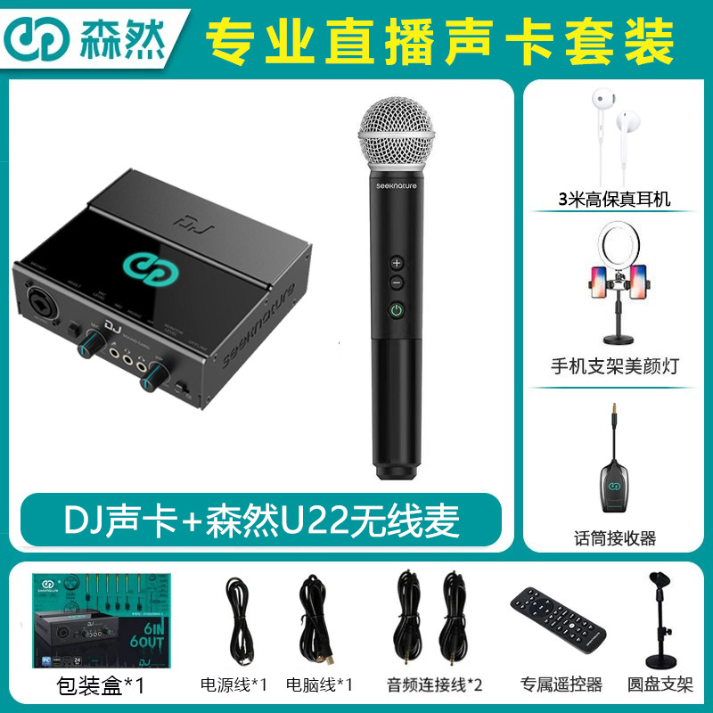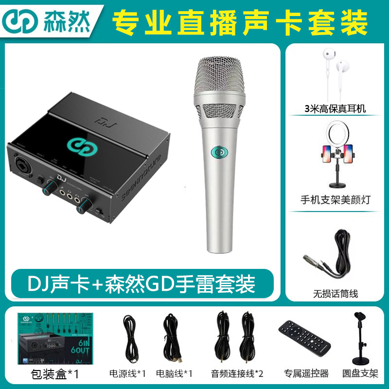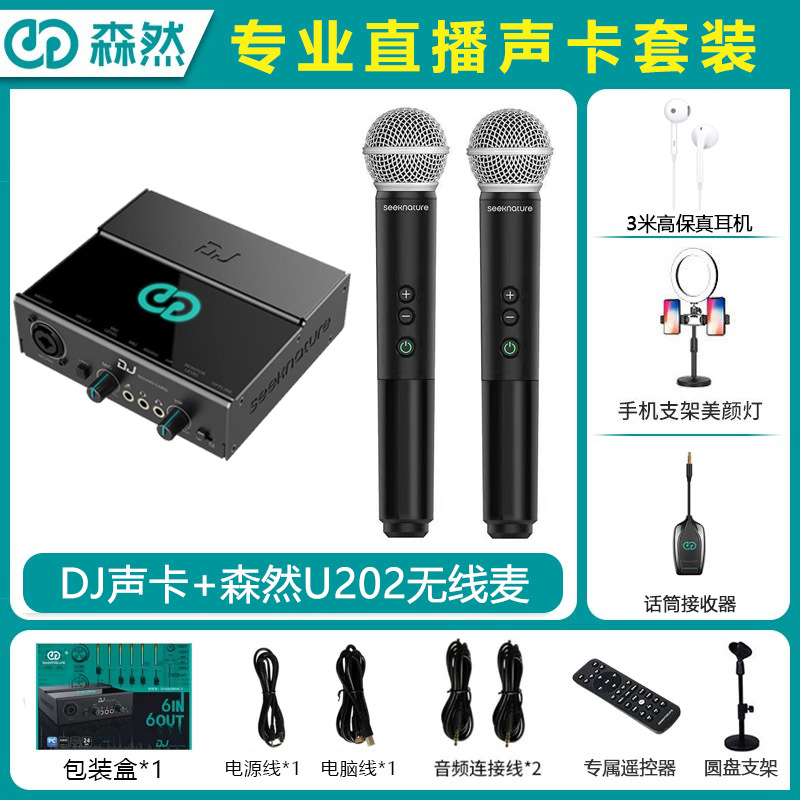 센란보바 DJ 사운드 카드 컴퓨터 휴대폰 라이브 방송용 유니버설 앵커 인터넷 연예인 야외 마이크 풀세트스토어 가기