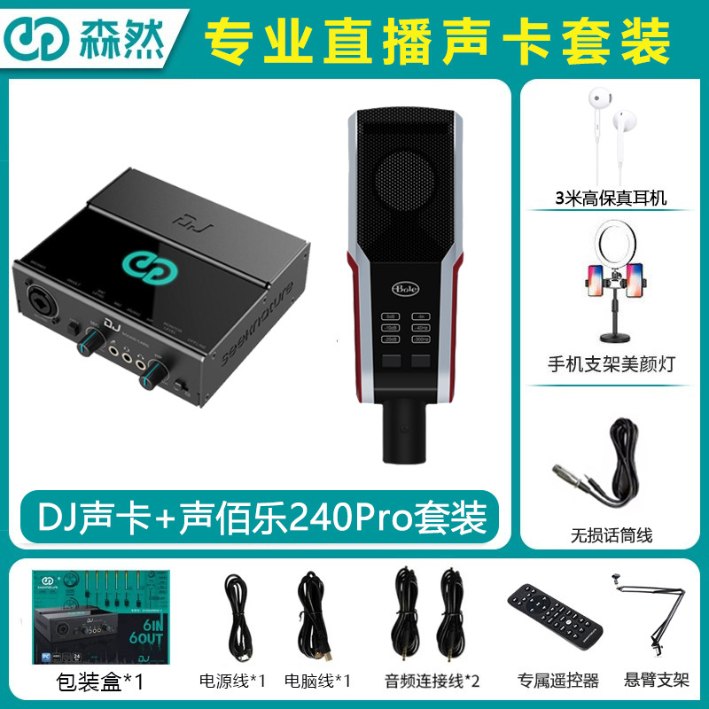 • Senran DJ 사운드 카드 + Shengbaile 240PRO 마이크(48v) 세트