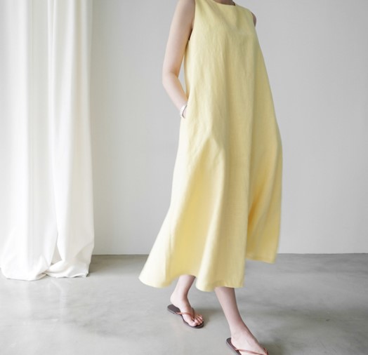 564 한국 면 및 린넨 드레스 여성 2025 여름 느슨한 슬리밍 긴 민소매 무릎 길이 린넨 조끼 드레스스토어 가기