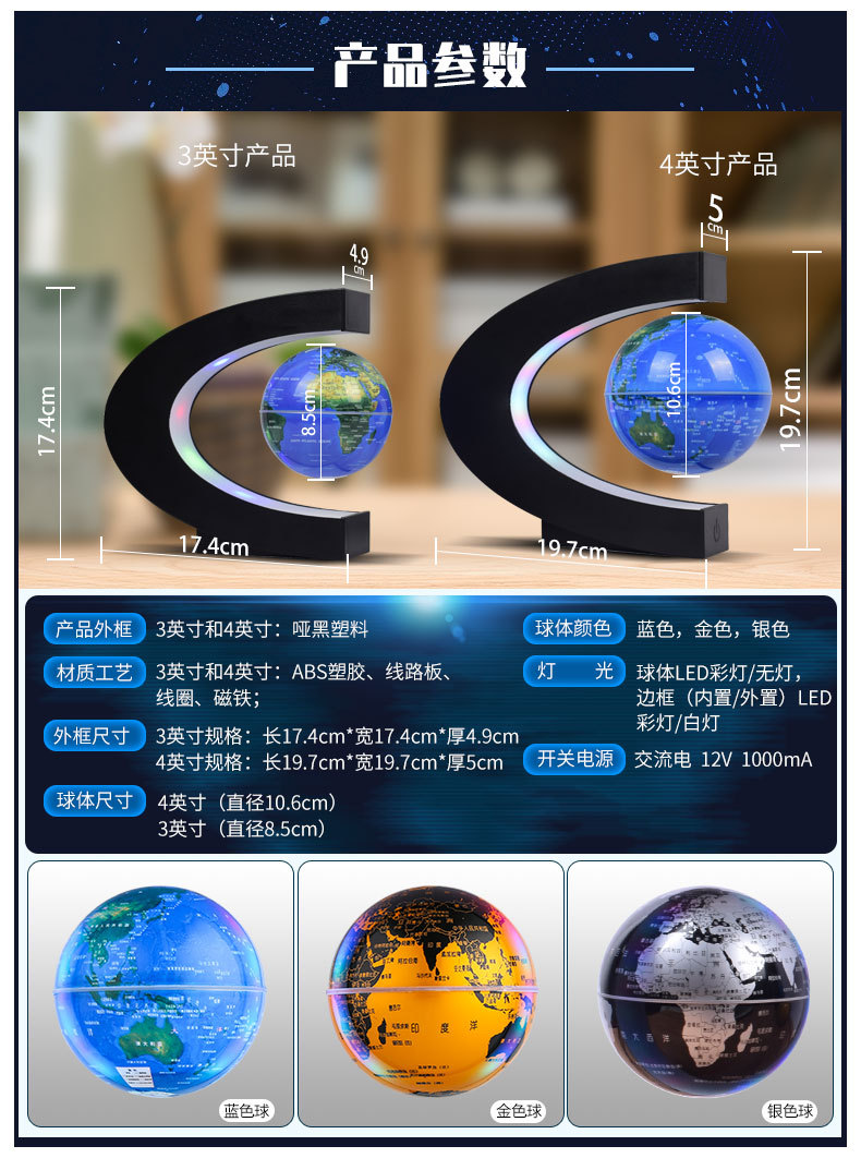 磁悬浮3英寸(8.5cm)地球仪(CXF-C3)