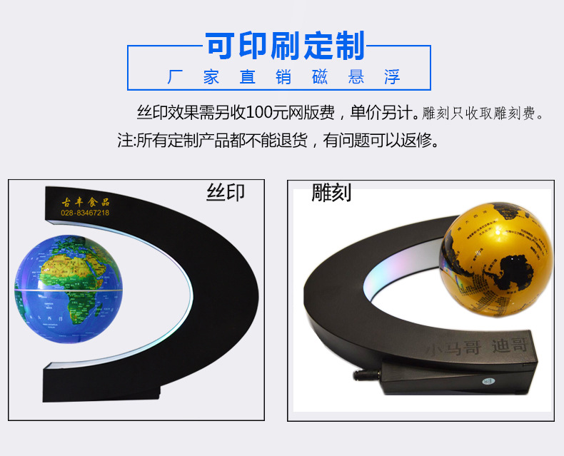 2、球体中、英文可选、球体银、蓝、金颜色可选