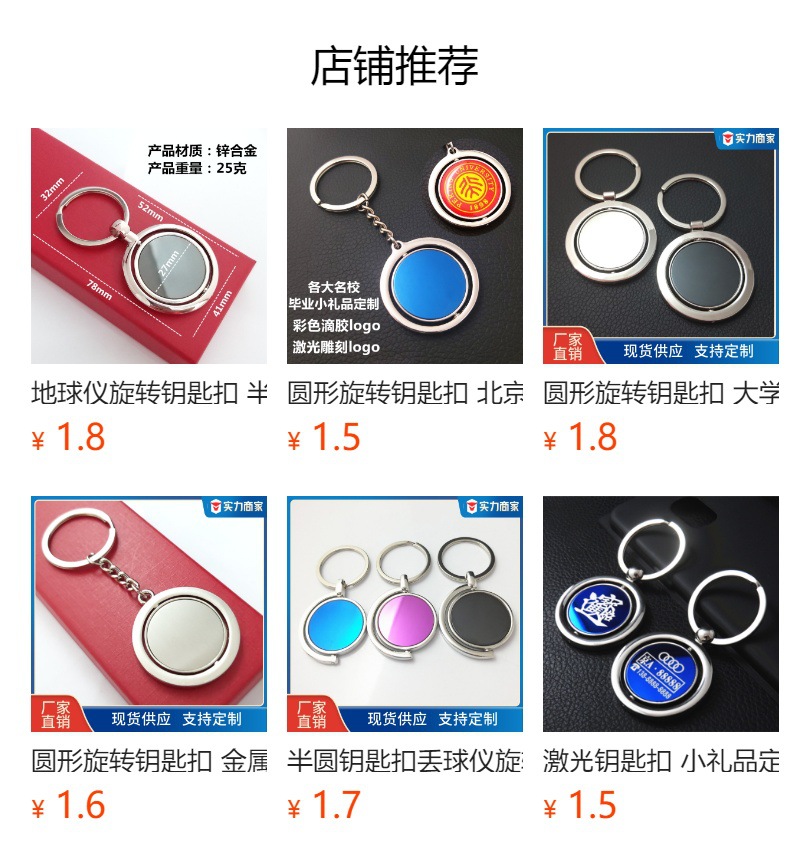 레이저 각인 키체인 금속 원형 회전 키체인 이벤트 프로모션 소품 창의적인 선물스토어 가기
