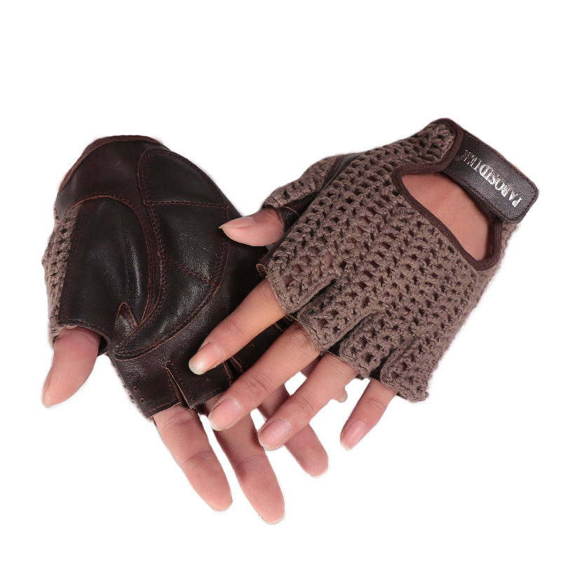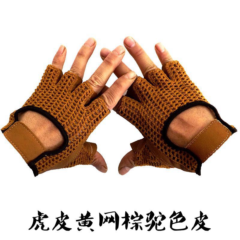 남성과 여성을위한 핸드 후크 메쉬 반 손가락 정품 가죽 장갑 야외 스포츠 양피 피트니스 통기성 자전거 타기 장갑 국경스토어 가기