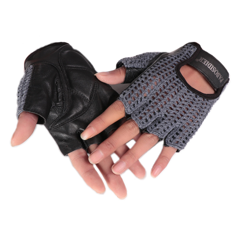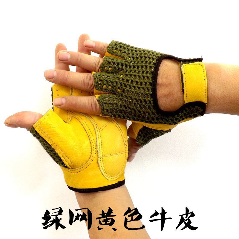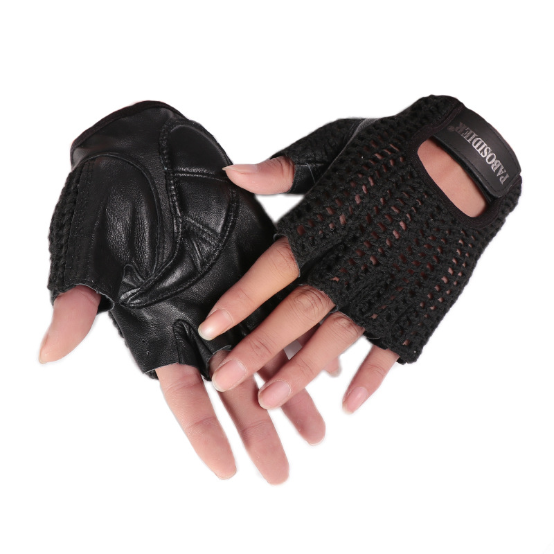 남성과 여성을위한 핸드 후크 메쉬 반 손가락 정품 가죽 장갑 야외 스포츠 양피 피트니스 통기성 자전거 타기 장갑 국경