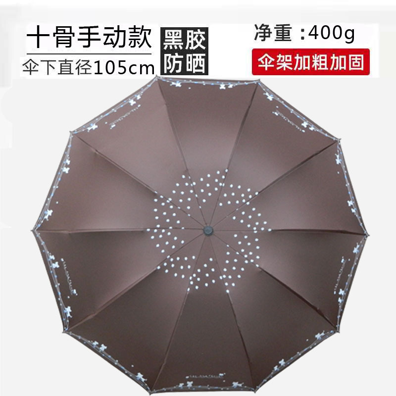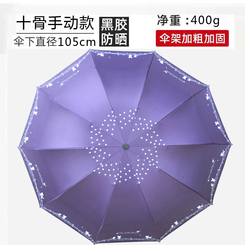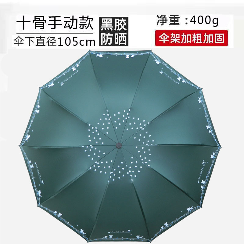 작고 신선한 10 뼈 강화 대형 써니 우산 남녀공용 이중 사용 차양 블랙 고무 자외선 차단제 UV